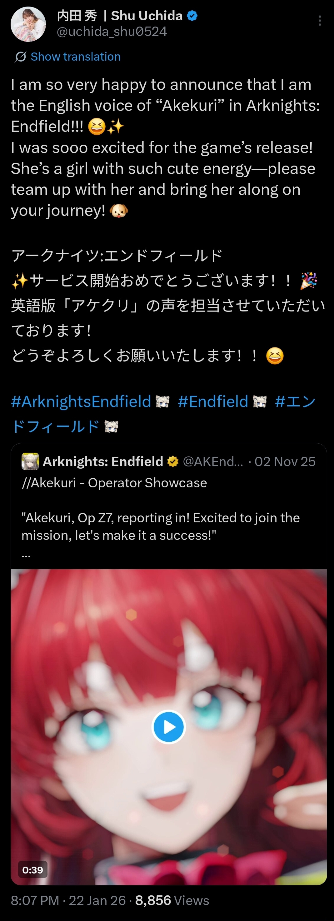 >【ゲスト:小林愛香さん】葉山風花誕生日配信〜もうタルトなんて作らない。SP〜(2026年1月20日放送)https://www.bilibili.com/video/BV11DkJBMEob/