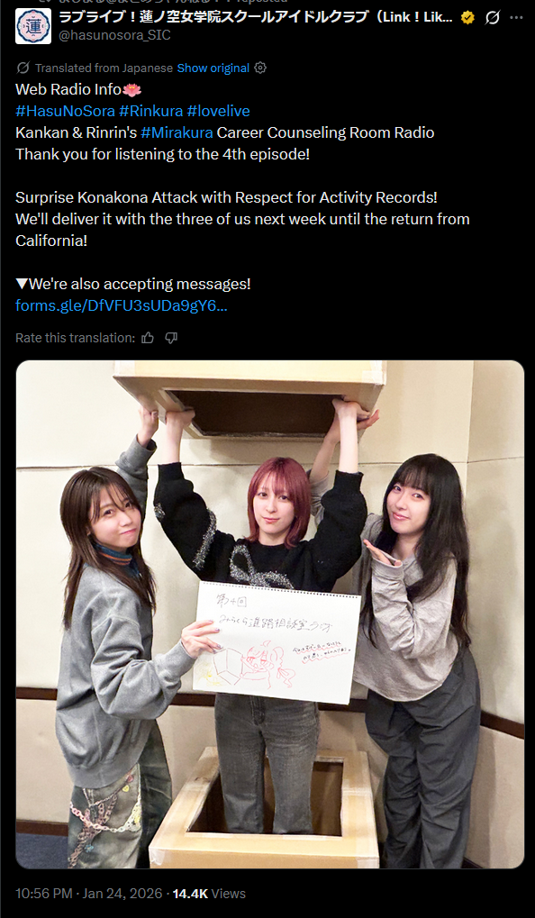 Which love live seiyuus would do this?https://x.com/DMZ1080P/status/2014896640008843382