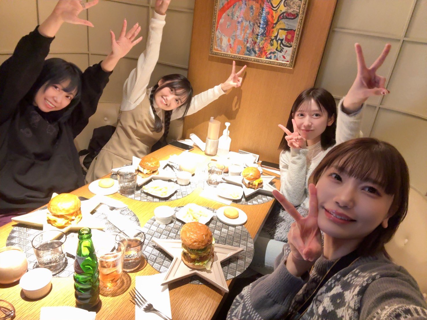 Aikyan with a giant burger and other actors she worked with for Ideal Seminar!!!