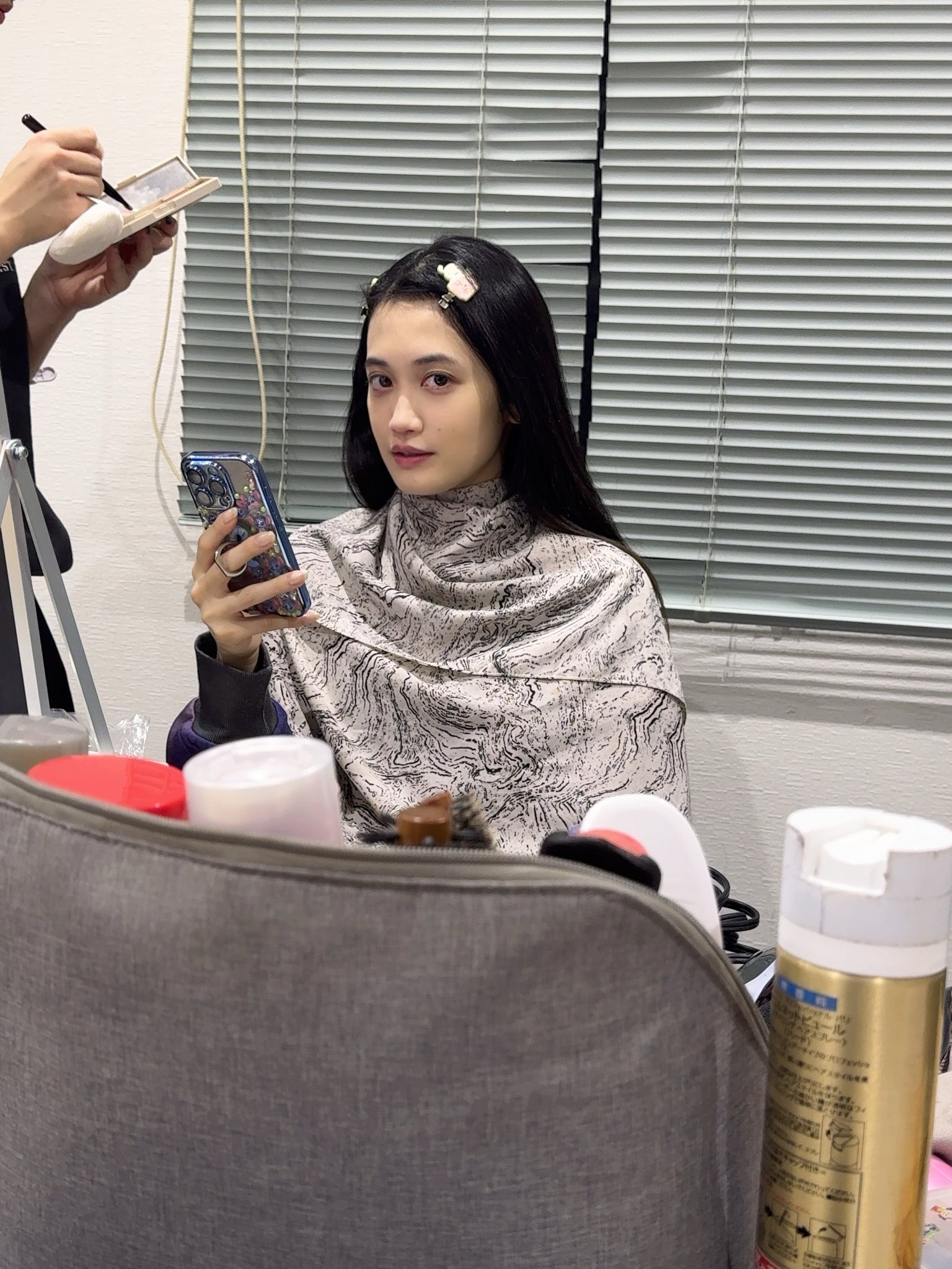 >>50618272Smart Cockchan using her hair to prevent her face from touching the acne disease.
