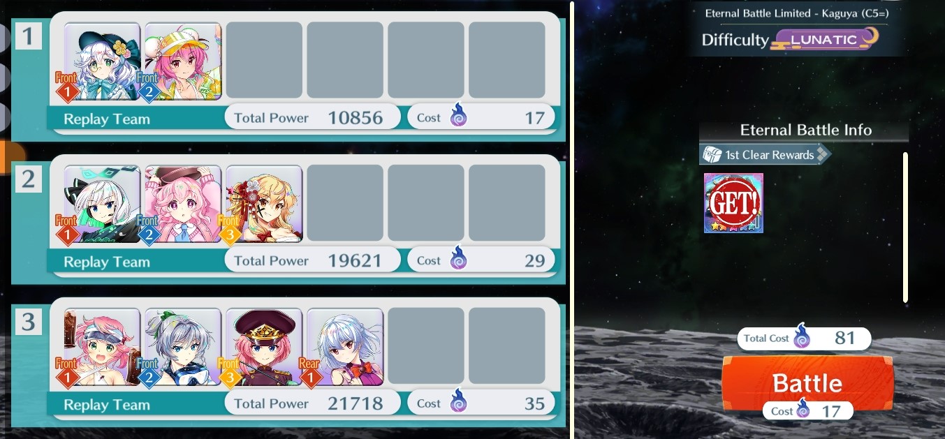 Lunarian SLAVES away in order to clear the 3000 battles challenge.