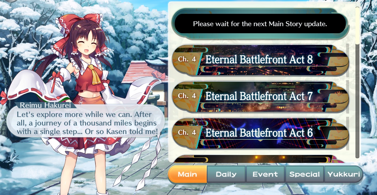 So it is! I feel like we won't see the masterminds be available until they feel like concluding the main story. I expect them to be handled just like the L0g units. My bet? Fumo universe with friends unlocked exclusively through purchases of a new LostWord Edition Fumo series.