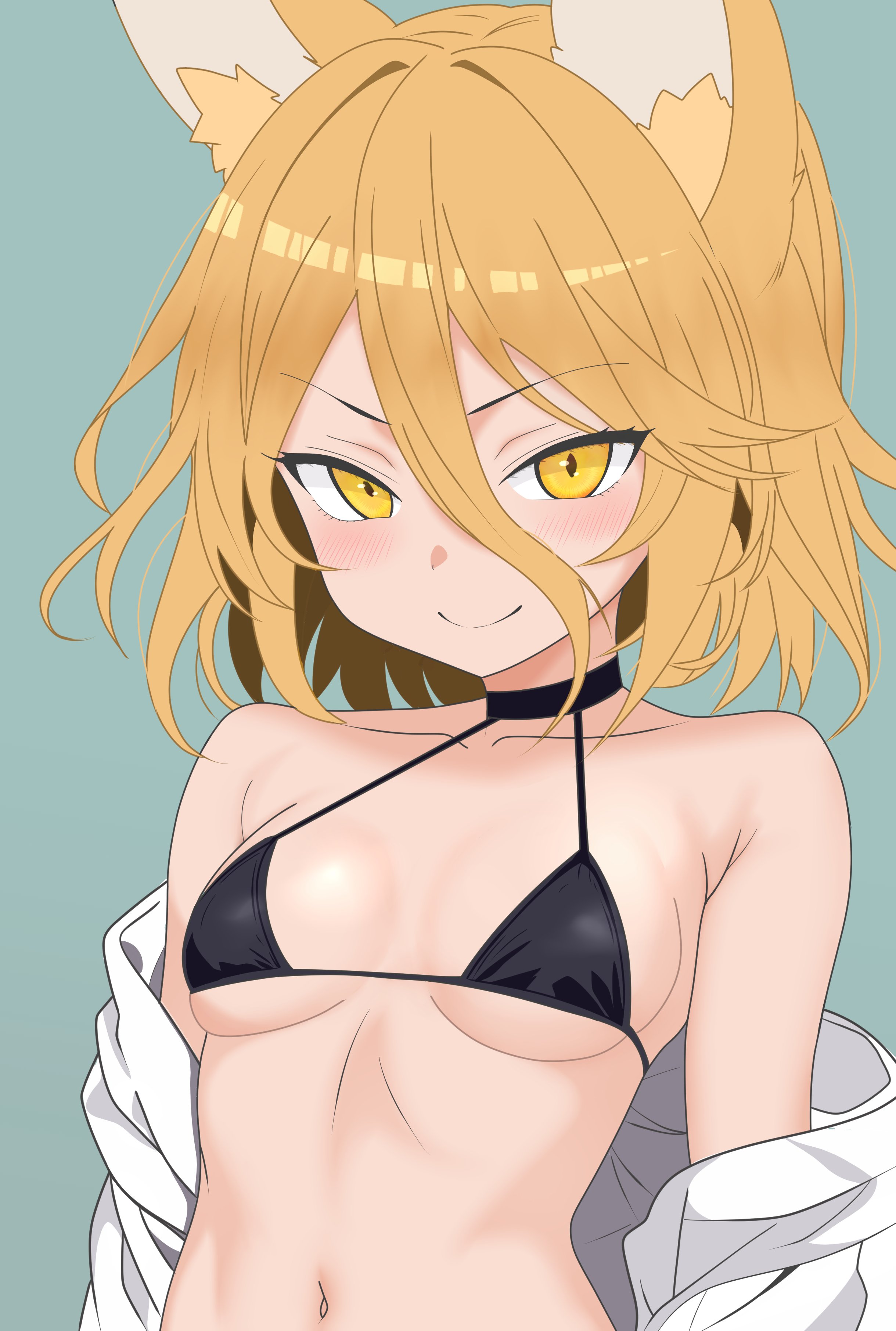 Eyes must be yellow/gold. She'd just be an elf with kemonomimi otherwise. She was drawn with slit pupils which is great.