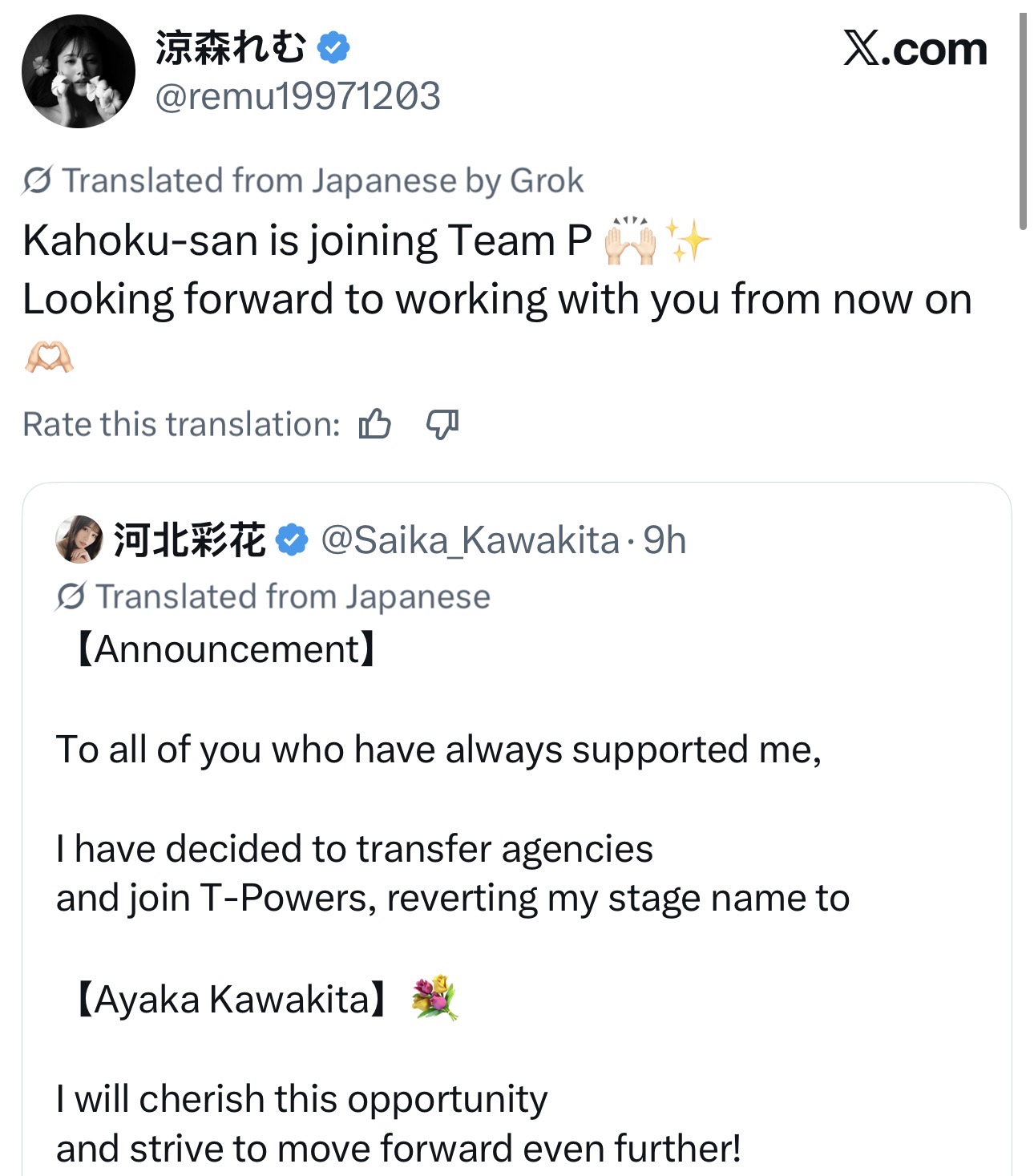 miru was with t-powers before she joined c-morethat agency is 2nd rate