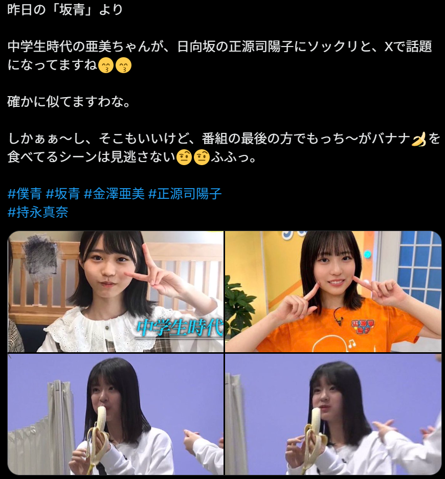 This thread is for the discussion of Nogizaka46, Hinatazaka46, Sakurazaka46, BokuAo, Yoshimotozaka46 (on hiatus), and topics relating to them and their members.>News(02/2026) Kubo Shiori cast member in Movie, "Hodonaku, Owakare desu"(02/17-18) Hinata Hiragana 16th Single Live @ TOYOTA ARENA TOKYO(02/20-21) Coupling Collection 2022-2025 at Ariake Arena(02/22-23) 5th Album Memorial Live at Ariake Arena(02/27) Kanazawa Ami 1st Photobook(02/03/2026) Umezawa Minami 2nd Photobook release(02-03/2026) Okuda Iroha cast member in Musical, "Lady Bess"(03/11) Sakurazaka46 14th single "The Growing Up Train"(03/28-29) AnimeJapan 2026 @ Tokyo Big Sight (Sakurazaka46)(03/29) BokuAo Spring National Tour 2026 @ KANDA SQUARE HALL (Tokyo)(04/2026) CENTRAL MUSIC & ENTERTAINMENT FESTIVAL 2026(04/04-05) 7th Hinatansai Festival(04/04) BokuAo Spring National Tour 2026 @ SENDAI PIT (Miyagi)(04/11) Sakurazaka46 5th YEAR ANNIVERSARY LIVE @ MUFG Stadium (Japan's National Stadium)(04/11) BokuAo Spring National Tour 2026 @ FUKUOKA TOYOTA HALL SKALA ESPACIO (Fukuoka)(04/12) BokuAo Spring National Tour 2026 @ BLUE LIVE HIROSHIMA (Hiroshima)(04/25) BokuAo Spring National Tour 2026 @ ZEPP SHINJUKU (Tokyo)(05/02) BokuAo Spring National Tour 2026 @ GORILLA HALL OSAKA (Osaka)(05/09) BokuAo Spring National Tour 2026 @ DIAMOND HALL (Aichi)(06/20) 3rd year BokuAo Anniversary Live @ STELLARTHEATER>LinksUpcoming Sakamichi TV appearances: https://pastebin.com/c8tMgEmh48/46 Group subs masterlist: https://docs.google.com/spreadsheets/d/1B1HFVF5iQBgvjDrPnmwfbq0Iz6VvaOmDep0C2x8yoMoSakamichi subbed content: Nogizaka46: https://nogiarea.weebly.com/ | Hinatazaka46/Sakurazaka46: http://keyavids.com/ | BokuAo: https://subs.j-idols.net/subtitles/BOKUAO/48/46 Group live shows: https://docs.google.com/document/d/1JnKp_AEeGUNTNePfY3C3AO4veiVi7frza82lRo44ejQSakamichi H/S: https://senublog.com/?s=完売表 | https://ameblo.jp/seto-kasumi (no longer updated)Nogizaka46: https://www.nogizaka46.com/Hinatazaka46: https://www.hinatazaka46.com/BokuAo:https://bokuao.com/Sakurazaka46: https://sakurazaka46.com/Yoshimotozaka46: http://yoshimotozaka46.com/>Showroomhttps://www.showroom-live.com/campaign/nogizaka46_srhttps://www.showroom-live.com/campaign/hinatazaka46_srhttps://www.showroom-live.com/r/BOKUAOofficialhttps://www.showroom-live.com/campaign/sakurazaka46_srhttps://www.showroom-live.com/campaign/yoshimotozaka46Previous Thread: >>50650029