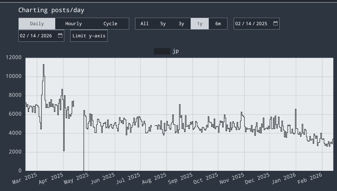 >>50674500The post rate here is half of what it was a year ago. There's even been a large decline over the past 2 months.