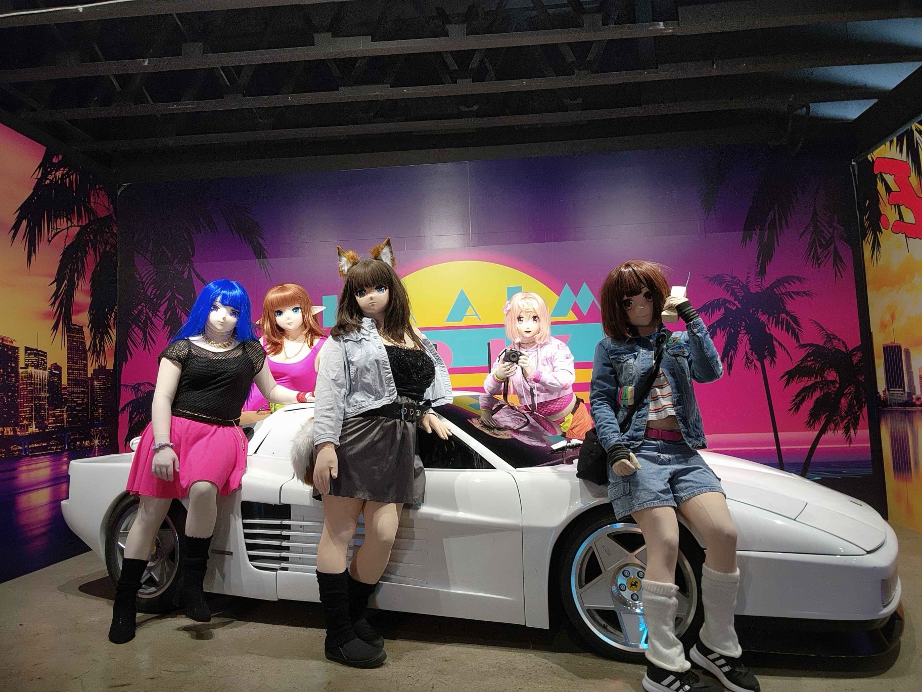 >>50723945Crackhead lighting. Three giant glares clearly visible on the back panel. Paru managing to get their face completely obscured while the rest of their body is illuminated. The back right kig completely washing out into the background because of the lighting. Why would you give a Miami Vice vibe photo op booth nothing but harsh overhead office lights, as far as I can tell? Nobody looks good with those, but the car does.