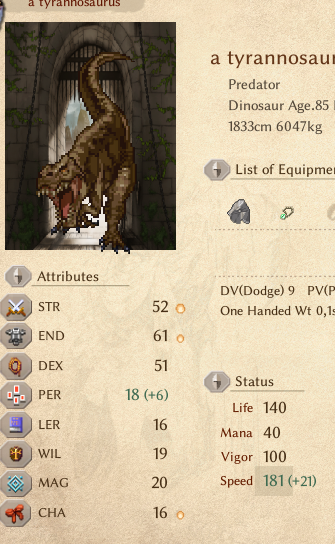 I didn't find any cute sprite or portrait for a tyrannosaurus.So I just butchered it and offered its 8 pieces of meat on an altar.Then I purchased a Yowyn horse with huge tits, and also fed bug mixed food to Gwen until she laid an egg because that oppai loli sprite made me bothered but I'm no pedo so no touch.