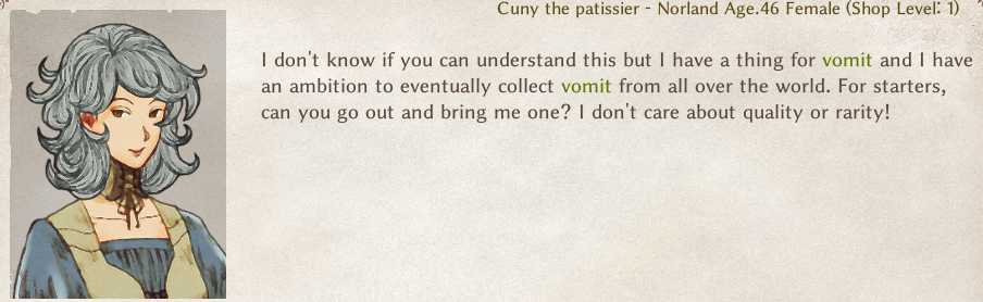 I think for >>>very early game<<<, there should be more equipment progression based on crafting instead for people who don't want to jump dive into Nefia.Also, trying to get your fist pickaxe that can actually mine shit sucks. Just having a new NPC or something that sells either stones, ores or the pickaxe would be nice.