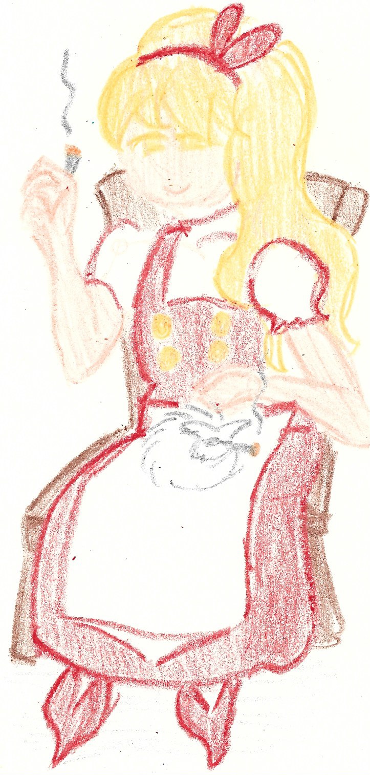 Marisa smoking a comically large blunt while topless.Uncensored:https://files.catbox.moe/ecatrt.gif