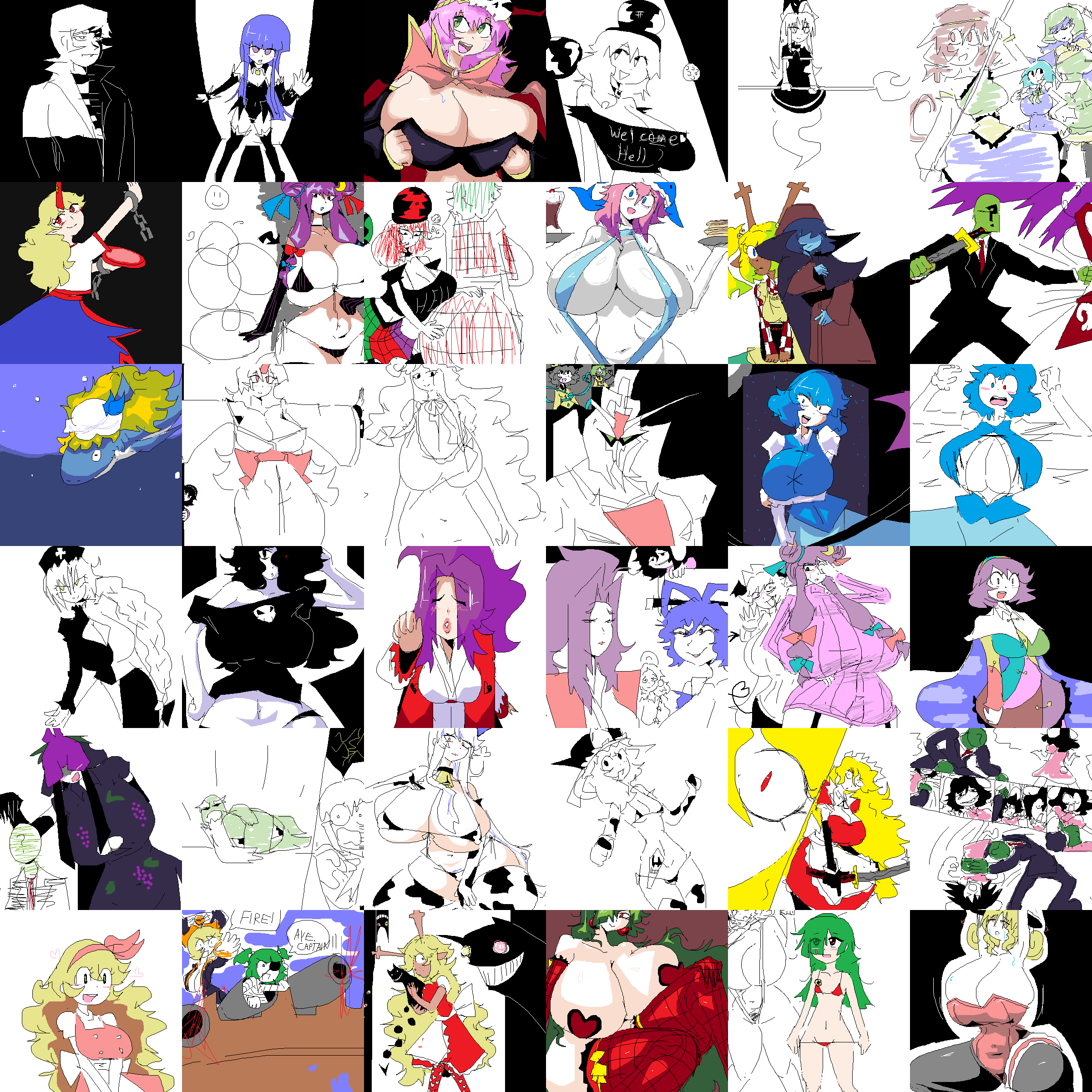 (broken apart to avoid spam block)>>50773726Cute kogus, Love the Style you got, the umbrella looked a bit wonky in the WIP but turned out nicely in the finished "product", Also I'm guessing a theme for the art here was 'Evil Eye'>>50773730>>50796586Too cute, I will get diabetus >>50773744Cool style here too... How is Cirno drawn the sexiest out of everyone else?!?>>50775615Medicine with tits??>>50776173I like when people try to combat sameface and do different eyes>>50795994cool>>50776741This is fucking amazing already dawg, I aspire to be on your level...>>50778235From this lineup:-Luv me sexy Rika-Luv me classic Yuugi-Luv the anon combatting the Meira plague-Sharkihime is too funny-Ahh /x/-tan how nostalgic (I still think /jp/-tan needs an update done by actual /jp/sies)-Sweater patchy, nice nice-Something about the style of that Chimata looks especially nice-Tewi is made for executing grappling moves-Supply and demand makes me really like your flatty Yuuka more than your usual... sorry (^ ^;(broken again)