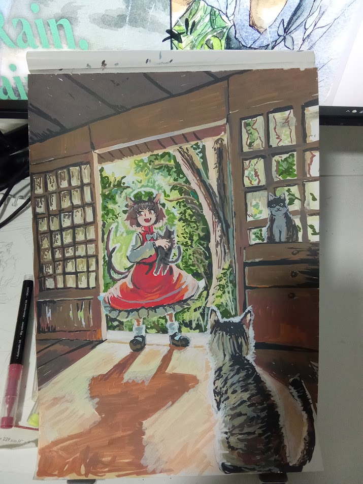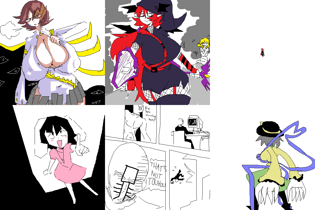 (Breaking it apart again, it triggers if you reply to more than 10 posts)>>50791117>>50798736Cute Kogus, Actually I kinda like it how it is with some parts of it still "unrendered" like her arms. Looks really neat. Oh well it's like getting two different pieces of art to appreciate>>50792336Very very nice colours and brushwork>>50799313Firstly, you've drawn the characters VERY well, are you the same guy who did the Patchouli drawing earlier? cause you got the same amount of effort. Secondly this is really funny, got a chuckle out of me>>50799824Love the shading linesAlso as for my own OC efforts, I tried modding my darling Nina into this game https://litter.catbox.moe/u4nxmi.mp4but I'm so shit at drawing I could only really edit one of the base sprites (and also that dialogue is not my A-game...) so I'm not going to finish it (for now). Anyone else ITT want to take a shot at modding this game for fun. It's stupid easy My Spring resolution is to get more involved in cultivating my OC skills moving forward (if I don't Lily will beat me up, next Spring)