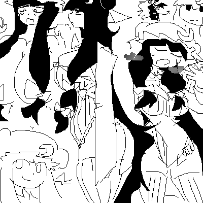 Seeing some old-school stuff from the good old times i decided to try drawing in that low resolution pixelated style. And enjoyed it so much i ended with entire PoDD crew. Slight yuri warning https://files.catbox.moe/dz7i90.png