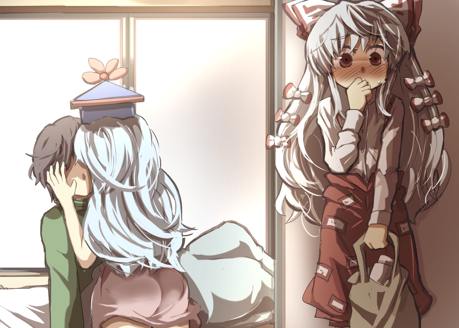 >>50761160Keine and Mokou are straight, and Mokou supports Keine's love pursuits with men.