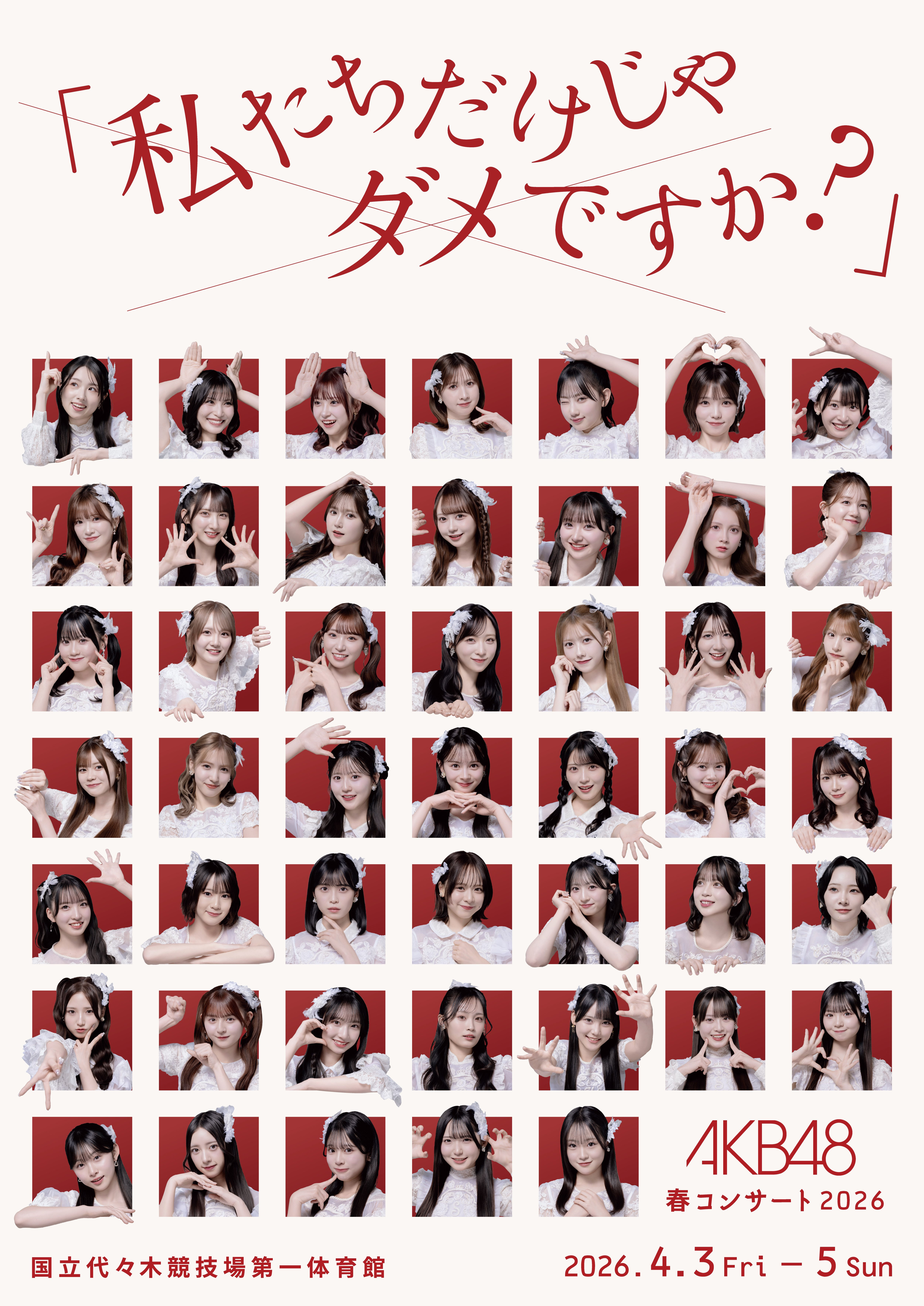 Previous: >>50725414All AKB sub-groups and related Japanese *48 groups welcome.FAQ: https://pastebin.com/vnf5EBHe>News(04/03) Mukaichi Mion Graduation Concert at Yoyogi National Gymnasium(04/04-05) AKB48 Spring Concert 2026 at Yoyogi National Gymnasium>Useful LinksTheater Schedules and Ticket Application: https://ticket.akb48-group.com/home/top.phpLive Shows: https://docs.google.com/document/d/1JnKp_AEeGUNTNePfY3C3AO4veiVi7frza82lRo44ejQ48/46 Group Masterlist: https://docs.google.com/spreadsheets/d/1B1HFVF5iQBgvjDrPnmwfbq0Iz6VvaOmDep0C2x8yoMo