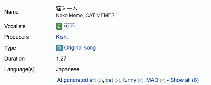 I only just found out today that it turns out I have a VocaDB entry with a really nice number. Nice get, whoever put me there.>https://vocadb.net/Ar/147471