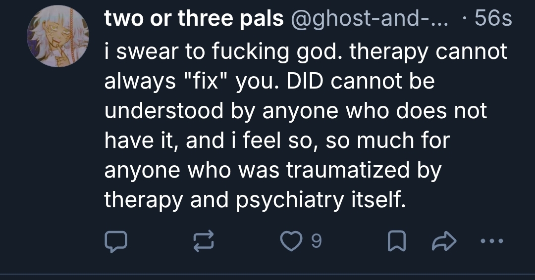 >>50777525Yeah, a big factor in tulpas is that you can literally kill them off and also have “servos” that are just inanimate thought forms designed to accomplish a mental task. They DO sometimes occur in people involuntarily and in similar circumstances as DID, but it’s not the same. I remember reading an article from a guy who was abused as a kid and developed a rather vivid gulps of a teenager who “protected” him, but it never took over his body or anything. It was a distinct personality. It also banished itself when he got older.