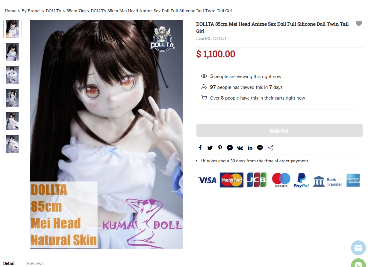 Bad news guys, it looks like (((THEY))) found out about Dollta and have been taking down their dolls since the last thread. The pink cat from the previous thread is gone as are the other 2 loli dolls, only the 112cm one is left but who knows how long she will stay up for.