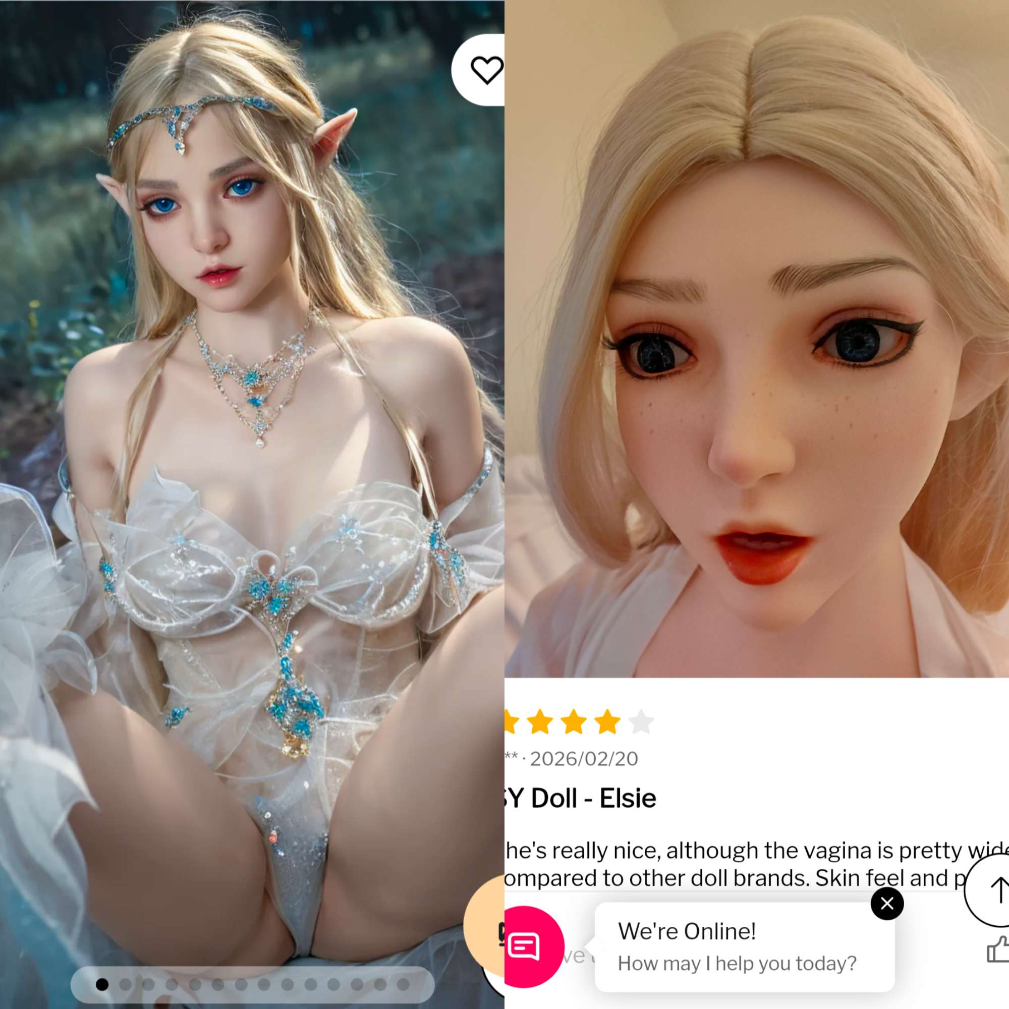>>50801728they look good because they're photoshopped to hell and back.Check out the store's promo photos vs the photos in the customer review:https://honeylovedoll.com/products/elsie-4ft-11-150cm-small-breast-elf-ros-silicone-head-doll