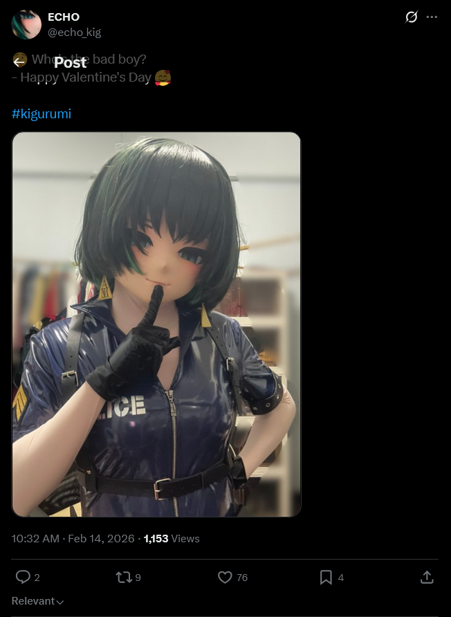 >it shows me nothing but a twitter account with the exact same kig, wearing the exact same mask and the exact same outfit at the exact same event, but is it her?