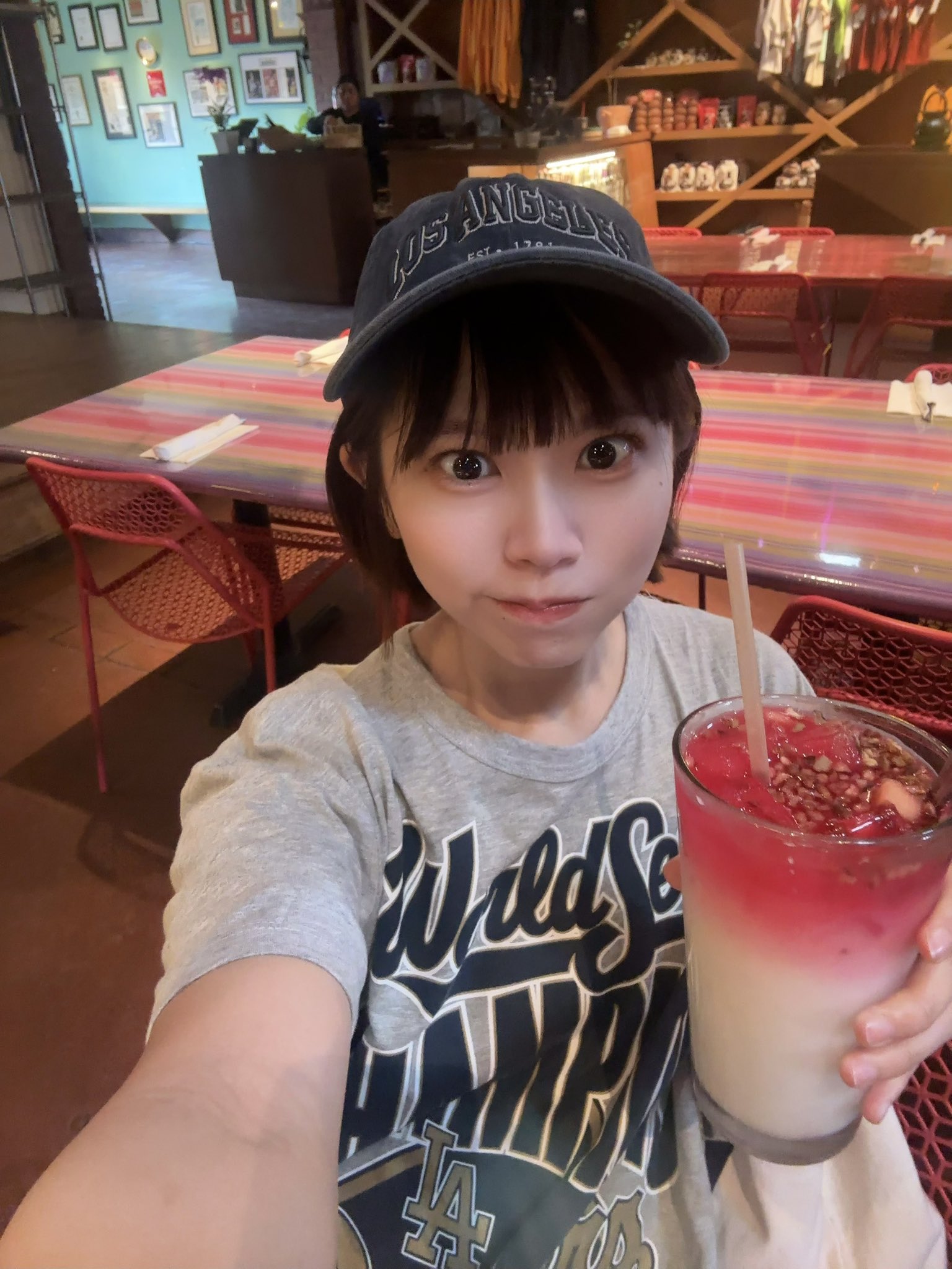 You can tell she's in california because there's a mexican in the background