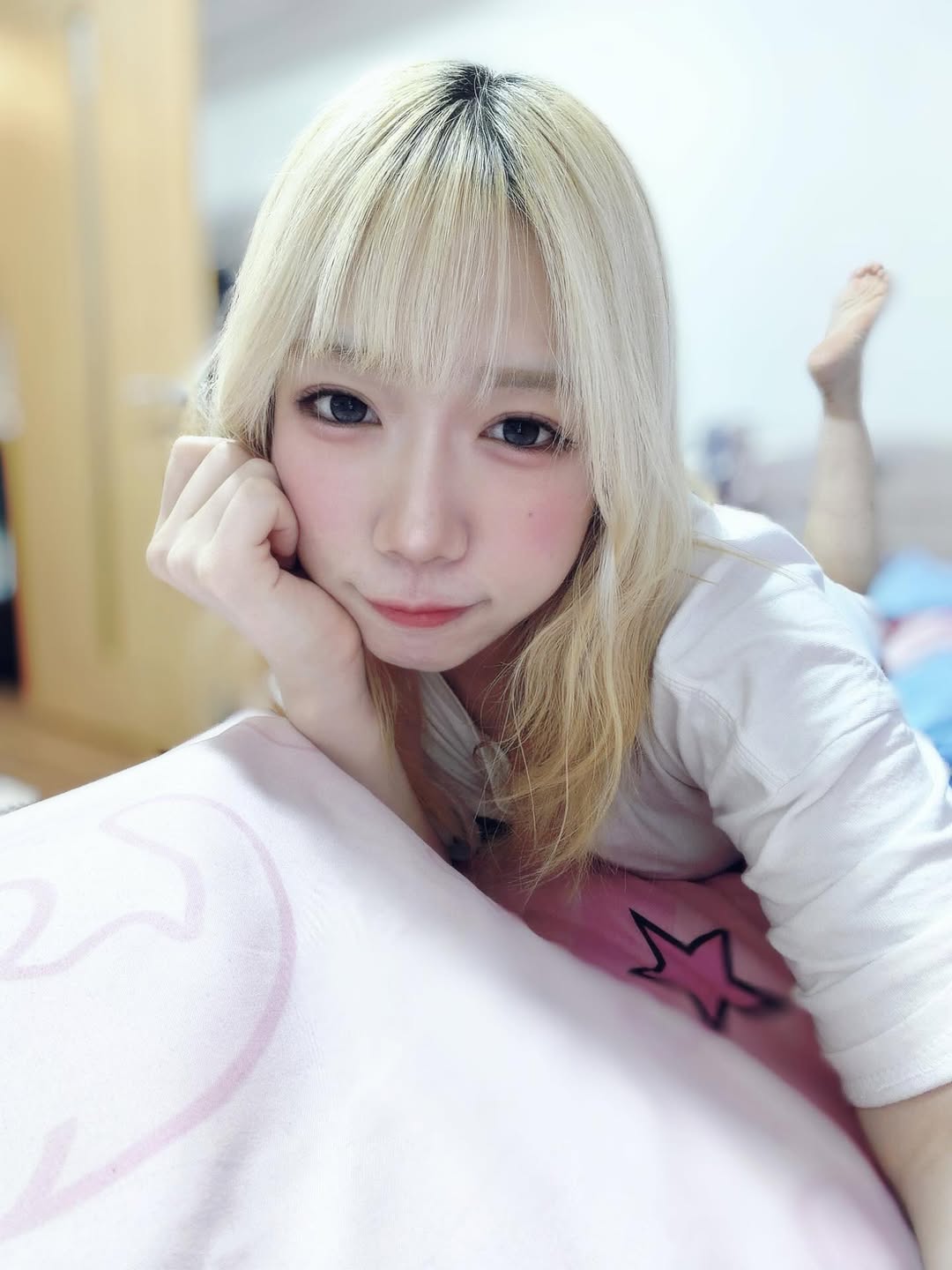 my oshi doesn't have any pics taken by unknown third parties in her bedroom. and she only has one set of pillows on her bed.