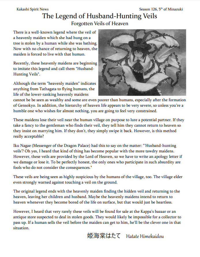 >>50789617>>50789776These two piece of lore get funnier if you assume Sakuyahime used one of those veils to steal Ariya's (prospective) husband.