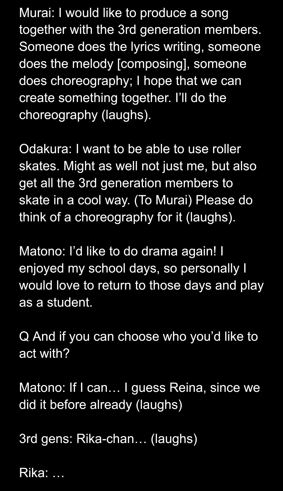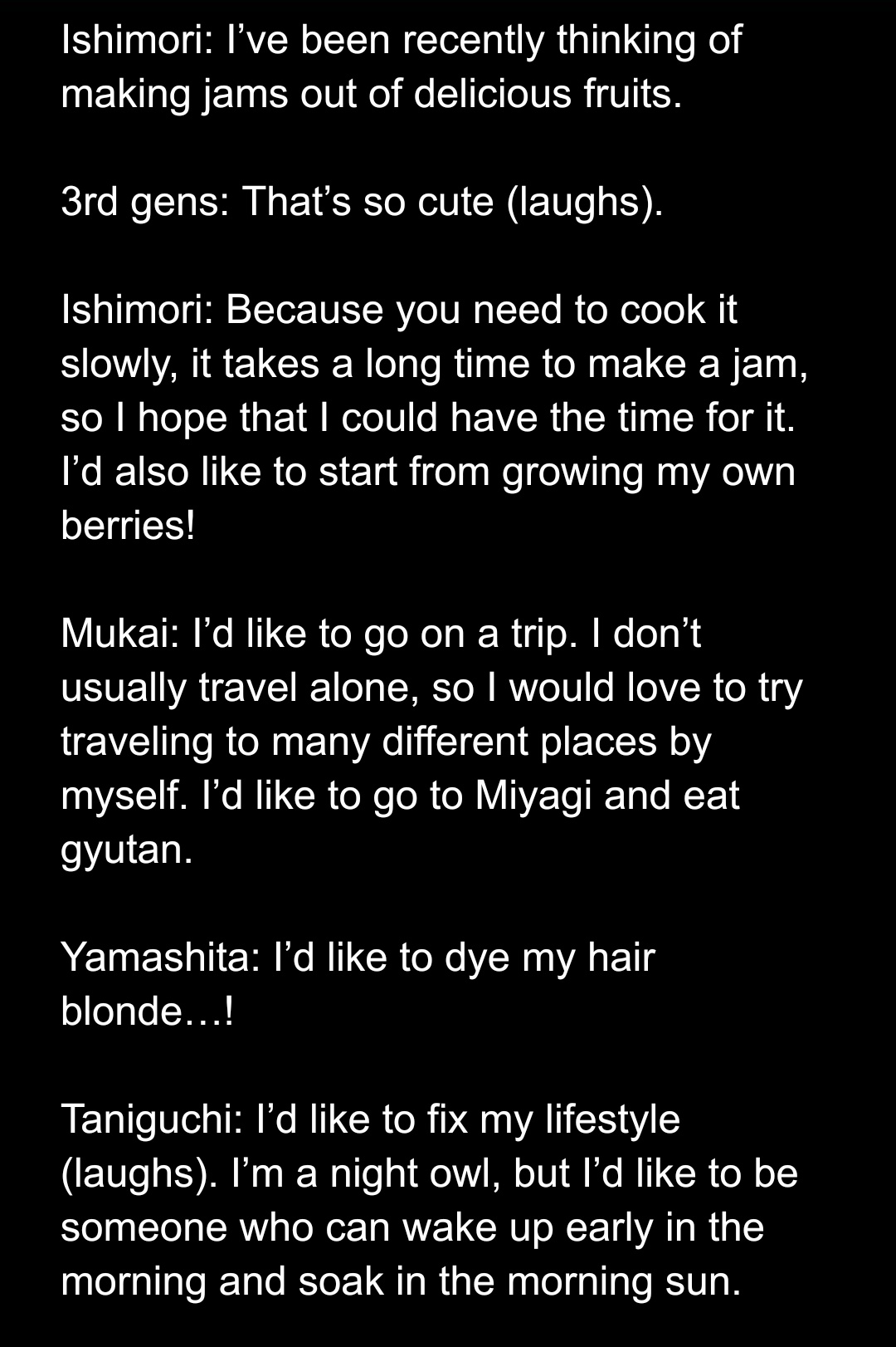 *whispers* Listen, don't stay on Meguro or Enpika's level. Become more athletic, act weird, crash out. Do anything to gain more popularity. Okay? Okay.