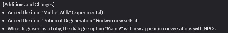 I have not played Elin in like three seasons,>* While worshipping Horome, anyone can now become your mama. Also, Horome followers no longer become a Sad Creature even if they repeat baby play.What in the actual fuck was meant by this?