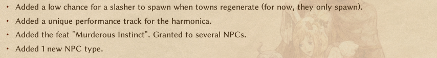 Beginner guide, FAQ and links: https://rentry.org/8vkaw - Multiple links in this rentry are dead or out of date, save us Anon!New child mechanics guide for Elona+: https://pastebin.com/7is8p4NFElona+ Custom-GX continued branch: https://github.com/JianmengYu/ElonaPlusCustom-GXExtra sprites/PCCs: https://elonaup.x0.com/sozai/index.htmElin Wiki: https://ylvapedia.wikiElin Player Guide-Compilation: https://ylvapedia.wiki/wiki/Elin:Player_GuidesElin Modding resources/code: https://github.com/Elin-Modding-Resources/Elin.Docshttps://github.com/Elin-Modding-Resources/Elin-DecompiledPrevious floor >>50747604