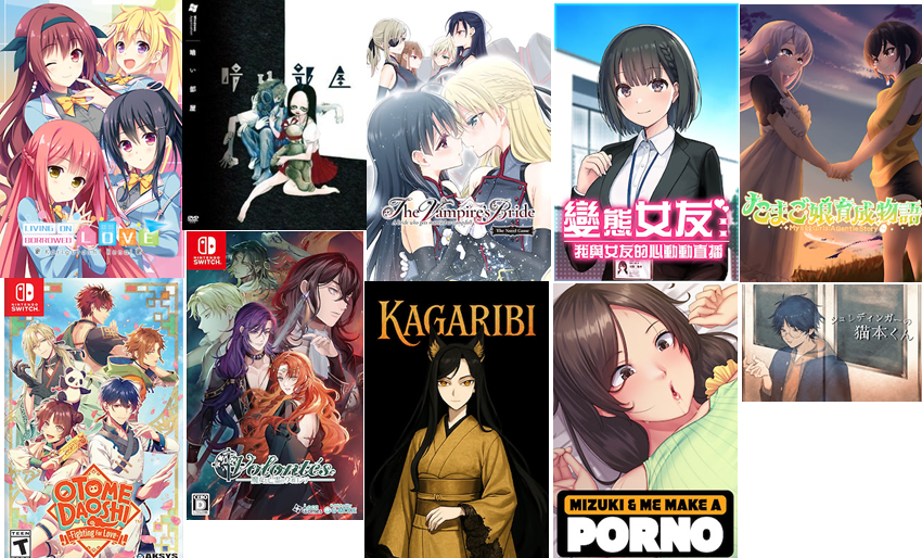 Official workMangaGamerRose Gun Days - April 9th release for Season 1Ciconia - Phase 1 ReleasedHadaka Shitsuji fandisc - Picked upRance X - 100% translated, 57% editedHow I Met My Healthy Hentai Neighbors! - AnnouncedPastel Chime 3 - Bind Seeker - - 100% translatedOoe - AnnouncedFunbag Fantasy 5 - AnnouncedWelcome to a Sexy, Underworld - AnnouncedJASTMachine Child - April 7th releaseMy Little Sister Is an Angel - Jast/Steam page upSumaga- "Probably our next Nitro title"Katahane - Making progress, waiting on programmingDjango - Not actively making progressTokyo Hero Project - Translation finished, dealing with bugsDjibril - Fully translated and edited, waiting on a few assetsHanamaru! 2 - In translationCornelica - AnnouncedDead Aegis - Another Record - Fully translated, in editingDaiteikoku - Announced, early in productionHoukago=>Education! ~Sensei to Hajimeru Miwaku no Lesson~ - In progressMinagoroshi No Otome - In translationEiyuu Senki WW - Japanese version 60-70% developed, localization being done by JastSchool Days Remastered - Preorders upShiravune>Amanatsu+ - April 14th releaseGirls' Dorm -Managing an All-Girls' Dormitory - AnnouncedHoly Valkyrie ExS-TIA P Parallel Episode 1: Magical Girl Pastel Marie - AnnouncedHoly Valkyrie ExS-TIA F Parallel Episode 2: Reunion - AnnouncedHoly Valkyrie ExS-TIA TS Parallel Episode 3: Twilight Sabre - AnnouncedHoly Valkyrie ExS-TIA 3 - AnnouncedHoly Valkyrie ExS-TIA R: The Red Queen - AnnouncedGirls' Dorm -Managing an All-Girls' Dormitory- After - AnnouncedKudo's Kuppa ~Your Mom I'd Like to Fuck.~ - AnnouncedCosplaying in Costalia: The Tororo Sisters! - AnnouncedLABYRINTHOS: The Depths Want You - AnnouncedStealing Them Softly - AnnouncedKokuhaku Confessional - AnnouncedFuyukuru. - Winter winds, adieu? - - AnnouncedGyaru Fiction - AnnouncedAksys>Otome Daoshi -Fighting for Love- - ReleasedOver Requiemz - 2026 releaseProject Code M - AnnouncedFrontwingValkyrie Tune: Synthesis of Souls - July release>COCORO - 2026 release>Obey Me! Sinner's Choice: Lucifer - 2026 releaseSharin no Kuni - Working to resolve remaining issuesMAGES. GAMECorpse Party II - Darkness Distortion - 2026 releaseAniplexTsukihime -The other side of red garden- - UpcomingIdea FactoryHomura: The Crimson Warriors - March 31st releaseBirushana: Winds of Fate - May 26th releaseBandai Namco Fate/Extra Record - 2026 releaseSpike ChunsoftDanganronpa 2x2 - 2026 releaseBushiroad GamesLilac -side Witch- - March 31st releaseLilac -side Wizard- - March 31st releaseMakuraSakura no Uta -Sakura no Mori no Ue o Mau- - "international versions of our "Sakura no" series are now in development."Sakura no Toki -Sakura no Mori no Shita o Ayumu- - "international versions of our "Sakura no" series are now in development."LaplacianKugayama Shiori no Shinizama Techou - English release plannedMonochrome Serenade - English release plannedQureateBunny Garden 2 - April 15th releaseAcacia>Magical Girl Witch Trials - Announced
