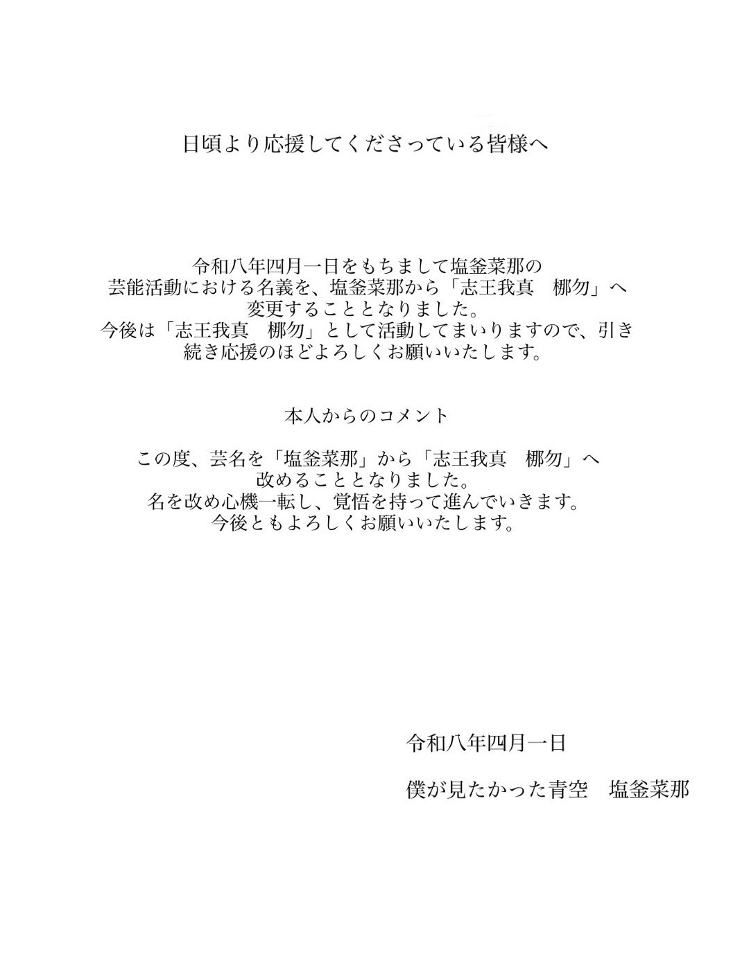 Shiogama Nana announced graduation