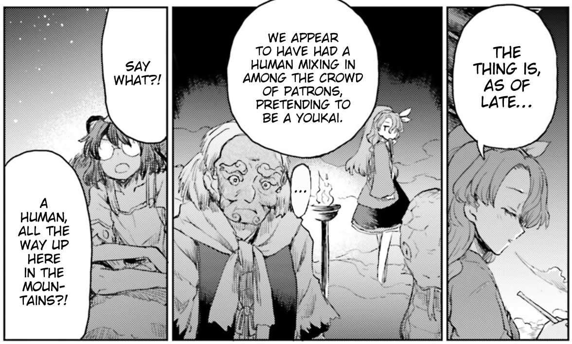 >>50829382When we get a chapter like this, without even a cameo by Reimu or Marisa, it really reminds me of what I wish this manga had been. Episodic stuff with each mini-arc focusing on different characters and using Miyoi and Geidontei as a base for those characters to congregate.