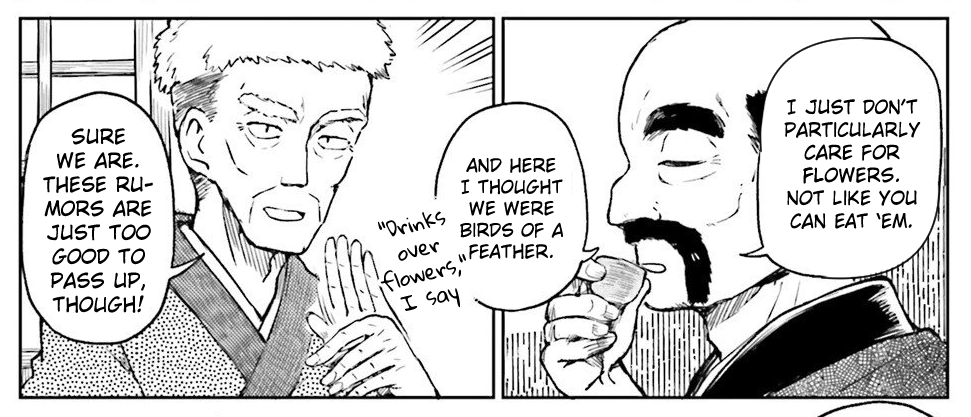 I don't mind this, I like Sannyo.Old men talking about the spirit reminds me of the lovesick girl from Forbidden Scrollery but it's probably a nothingburger.