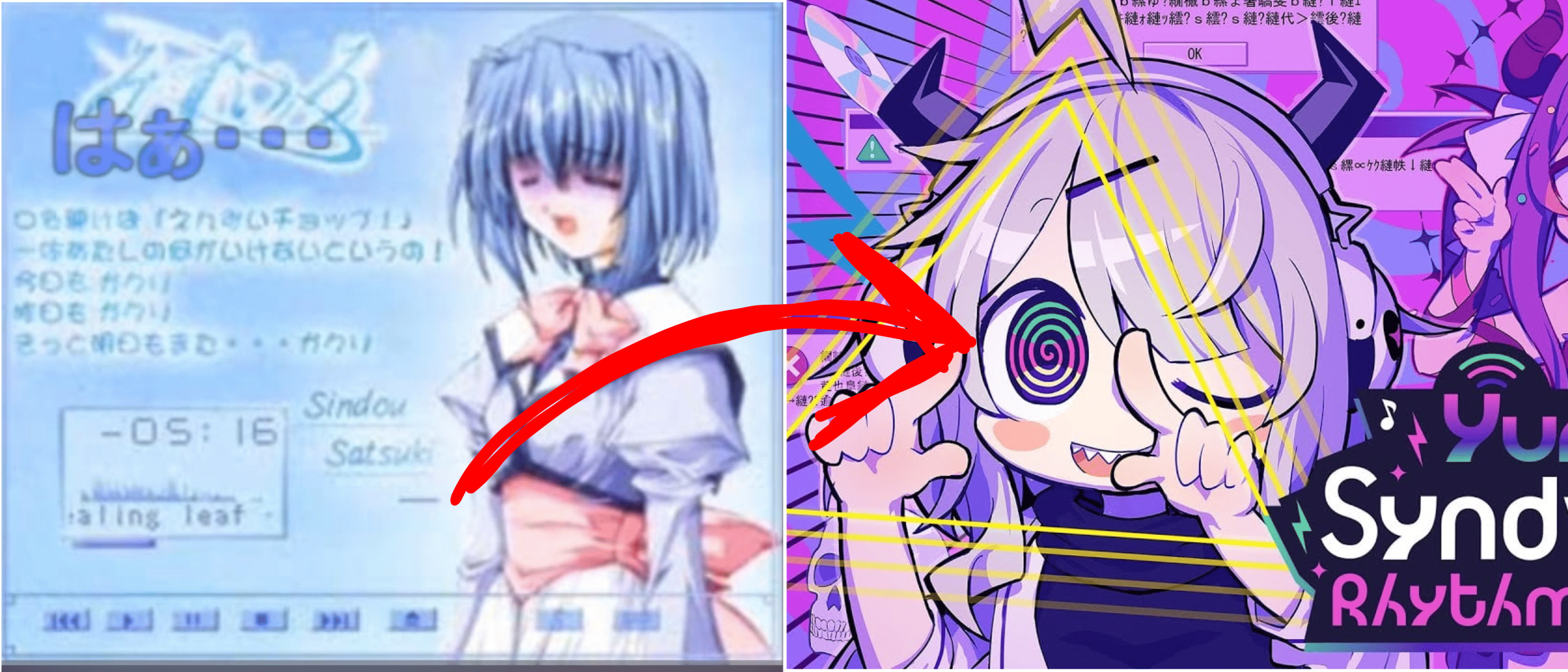 Yunyun Syndrome!? Rhythm Psychosis is scheduled to release on April 23, 2026Denpa-song these days has been heavily commercialized, genrefied & polarized to the point where it's associated with moe aesthetic & western transgender/cutecore culture, thus having been sucked from its authenticity that it once had during its glory days in the late 90s and 2000s where »moe« would expand the bishoujo 2D complex and ultimately overtake in the 2010s, leading to the terms »moe-pop« and it's elitist counterpart »trudenpa«