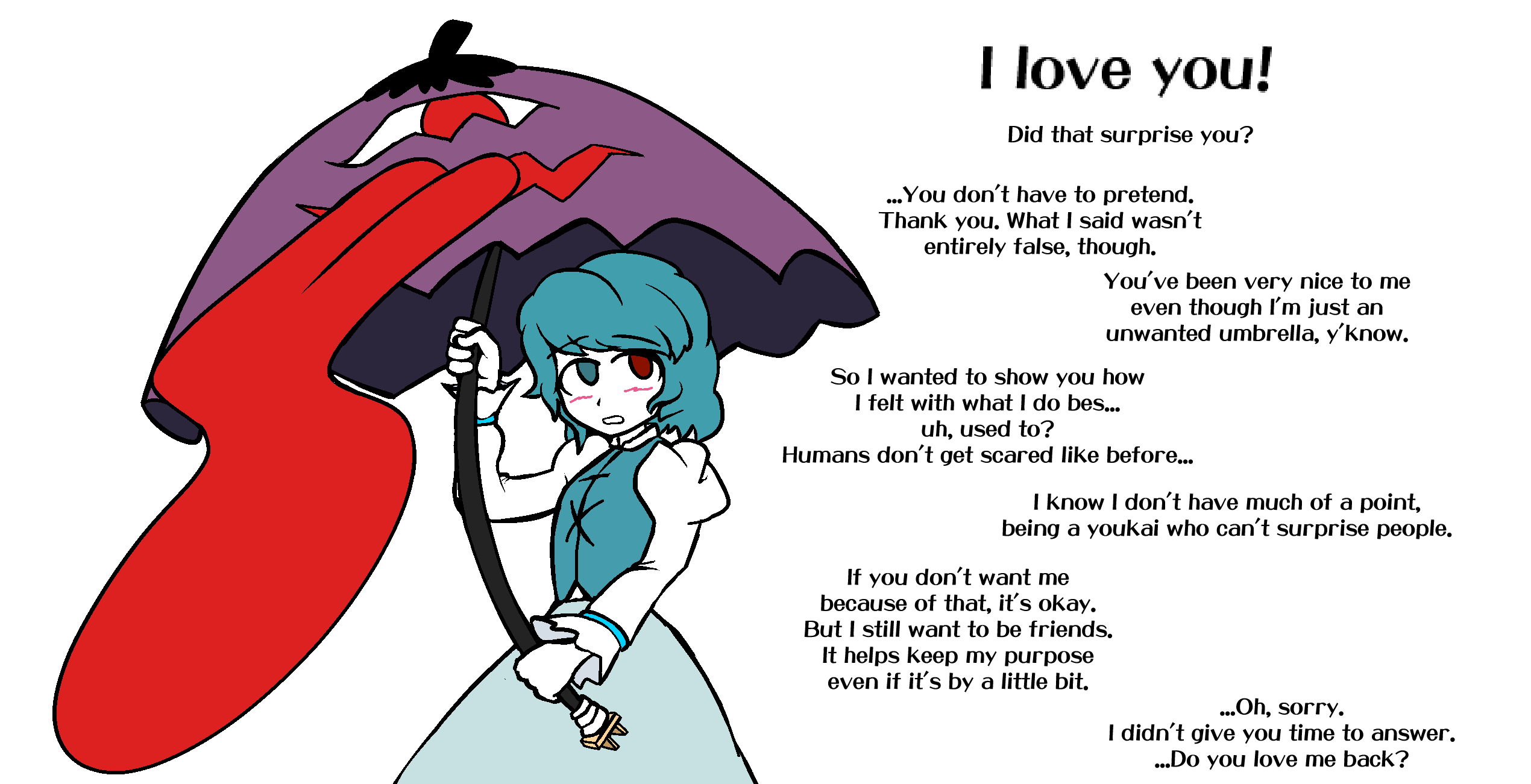 >>50857854>However, the umbrella is no mere decoration. It is inseparable from her. She is a tsukumogami that literally cannot exist without her umbrella. oh no...