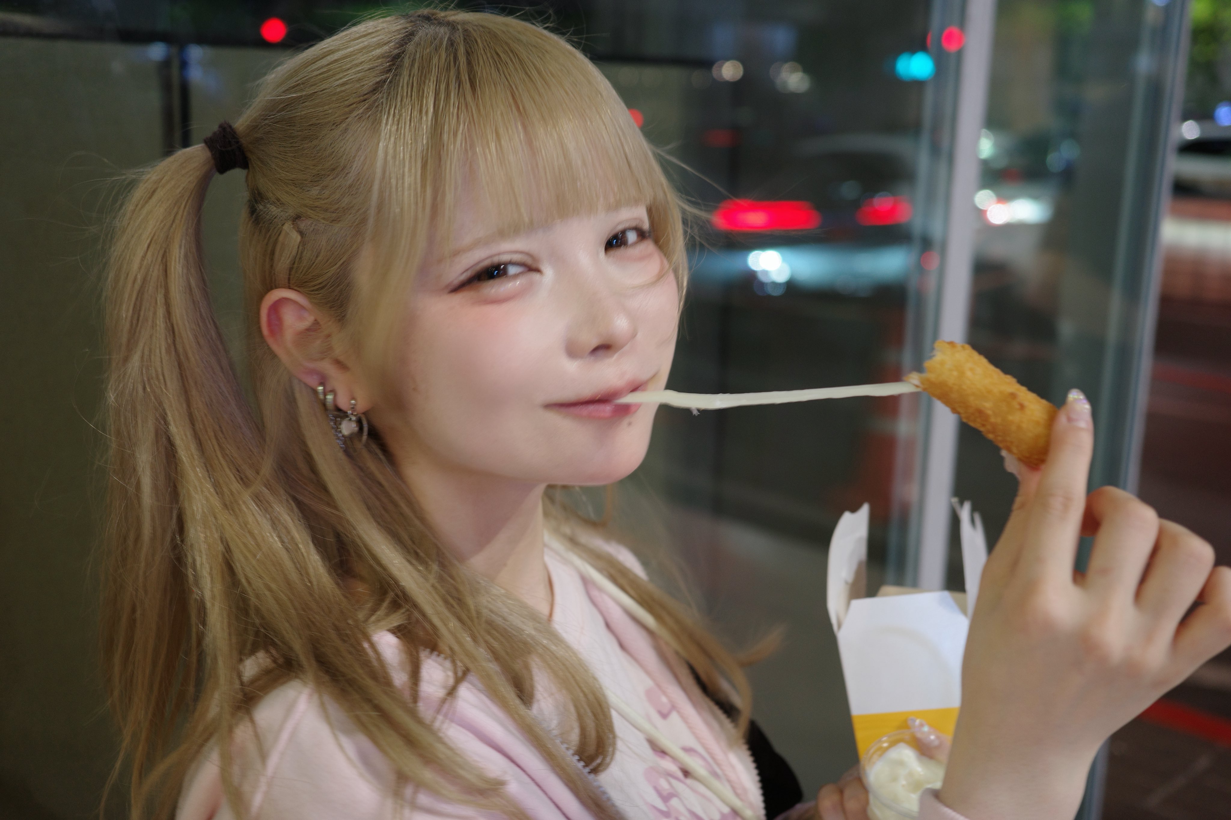 Japanese idol eating donut