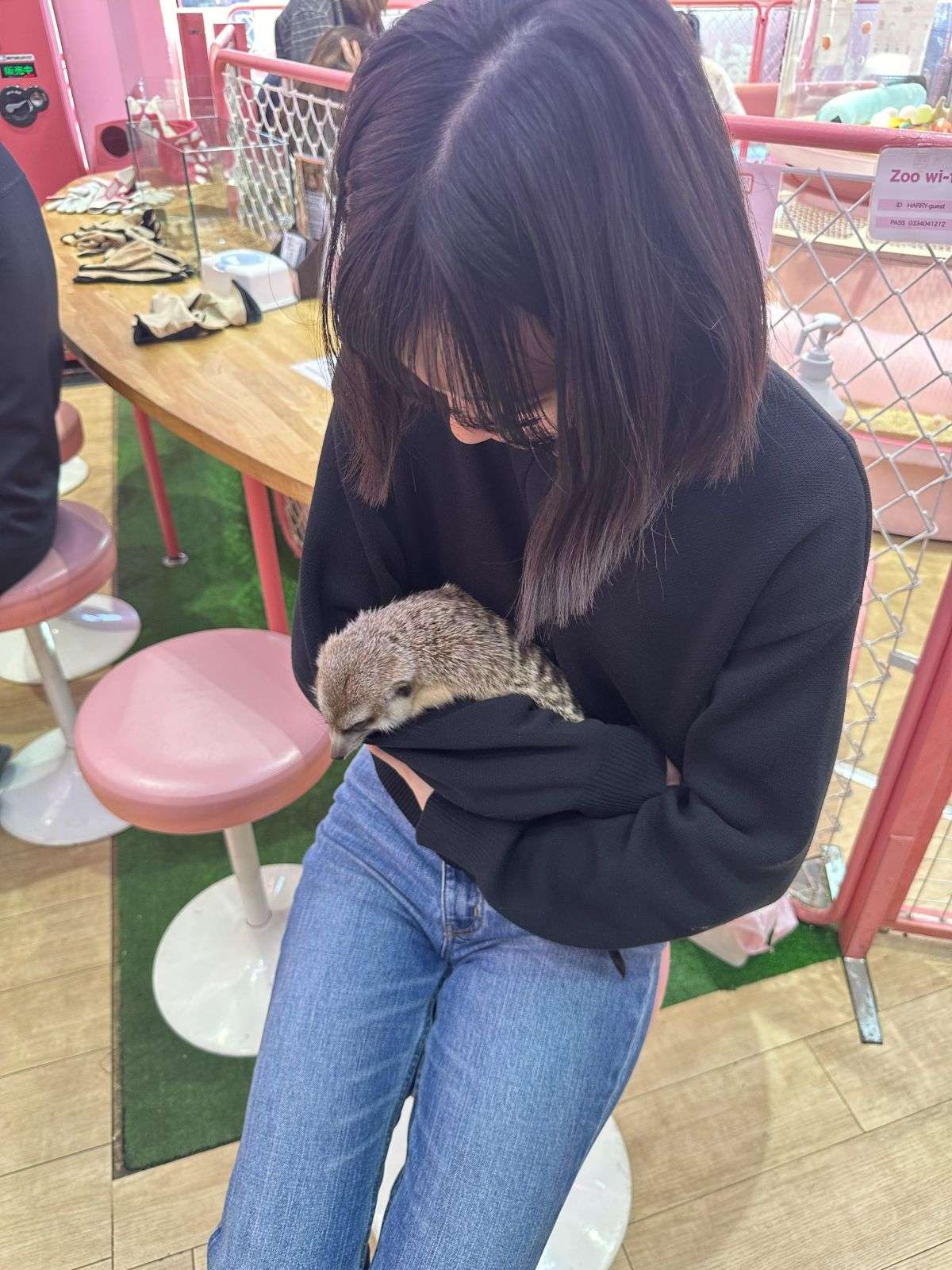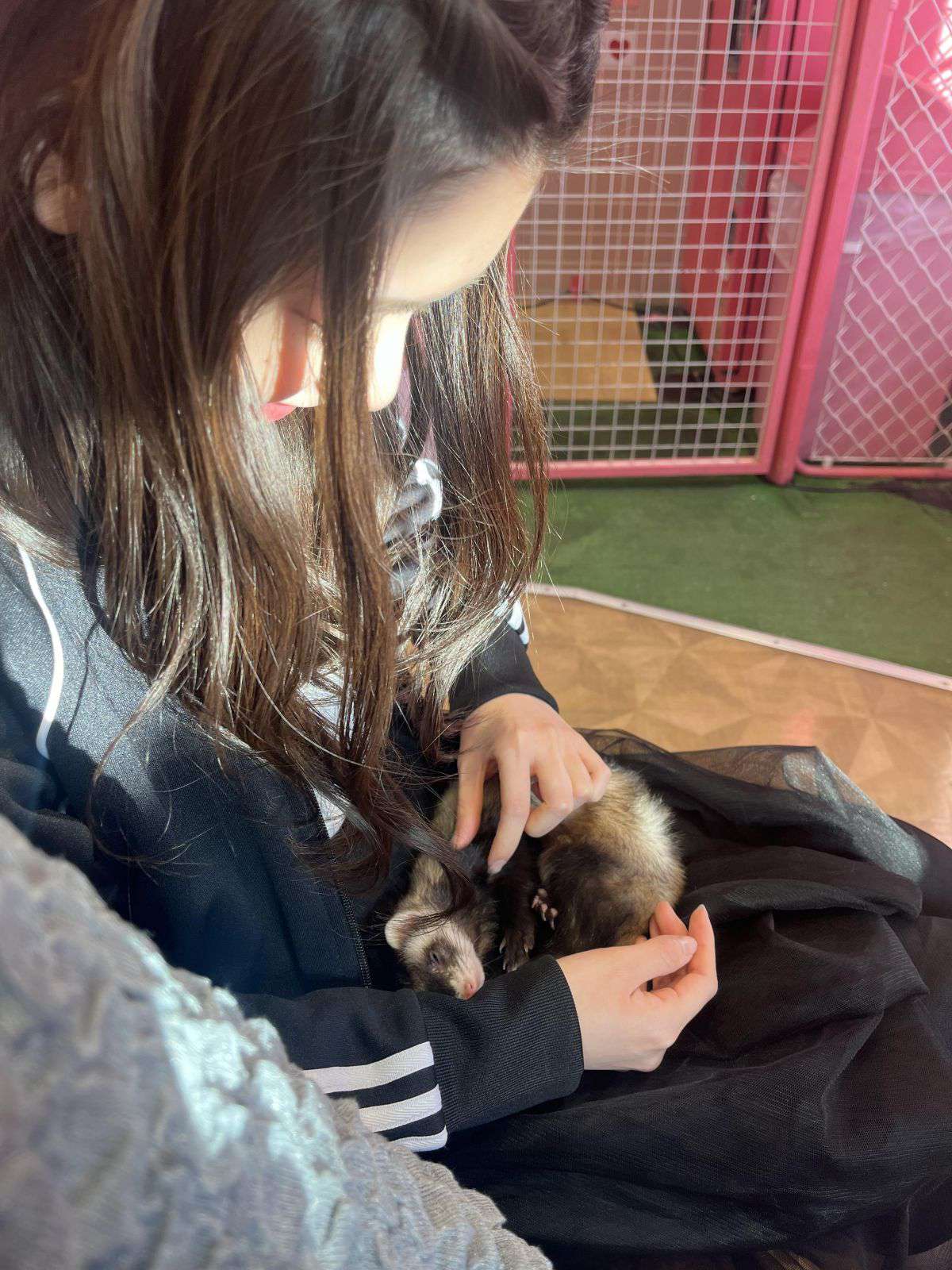 Akipo playing with her dogs Pugumaru and Aimaru.