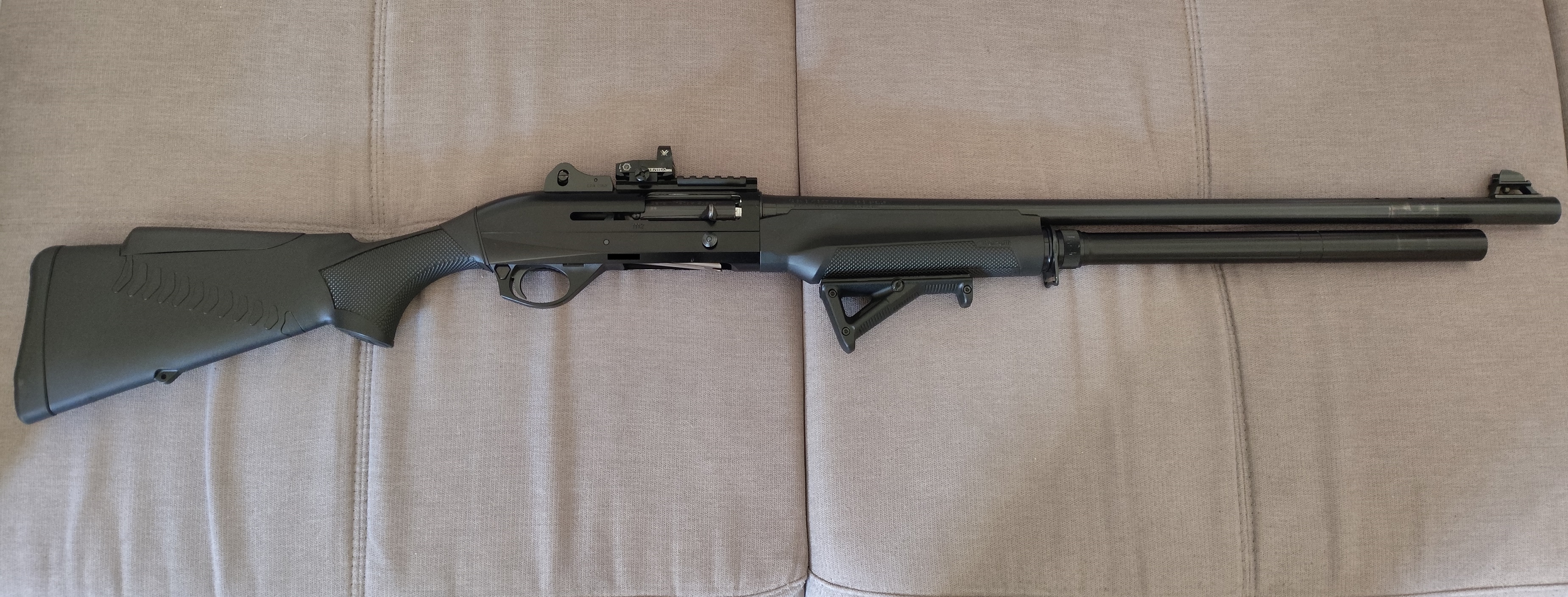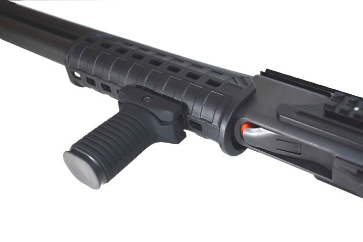 Hi people, so I got this shotgun that I use mostly for slug / buckshot shooting. A while ago I got my hands on another forend for this shotgun for free~ish so I tried something that I had in mind for quite a long time: adding a picatinny lower rail for accessory grips.So, first I tried this AFG and it works really really well for gun control, but it seems to be a bit... off for the eyes. Like, it is ok but seems a bit out of place, not visually pleasing. What would you suggest that has a similar function but, maybe, a better style for the shotgun? Maybe you know a better looking accessory grip. Thanks!