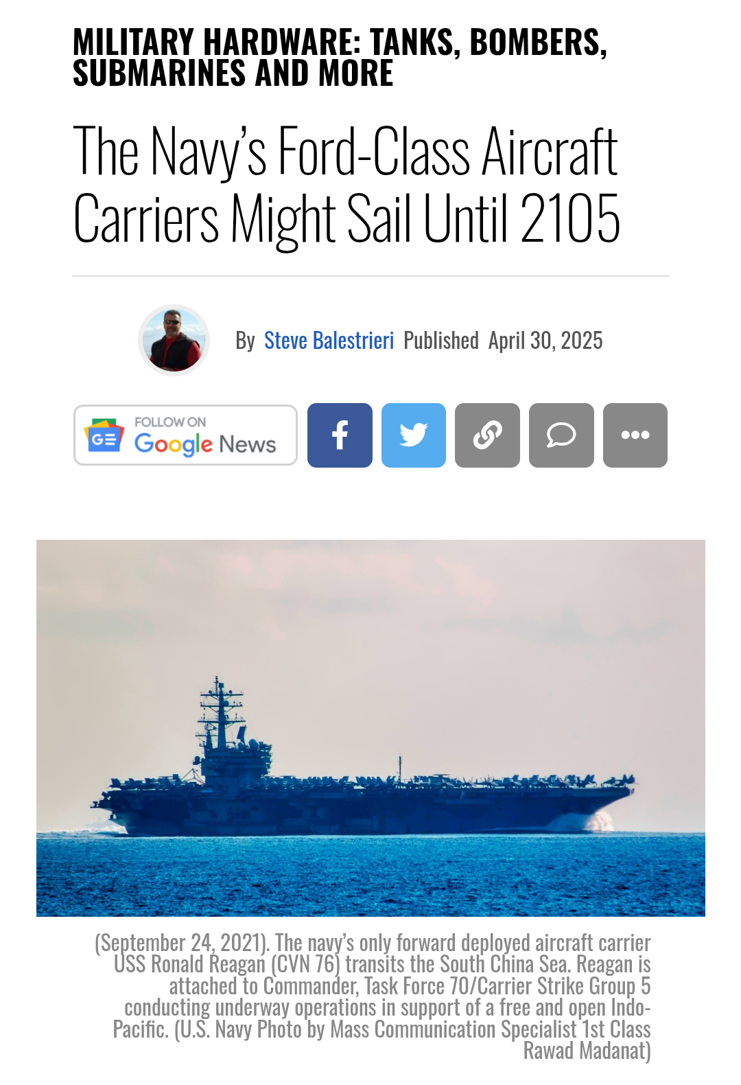 Your great grandson will sail on a Gerald Ford class aircraft carrier