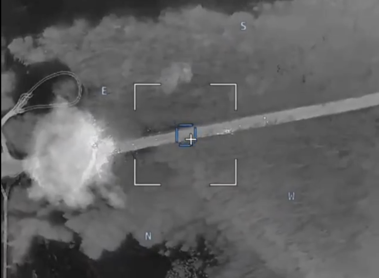 a moving truck, presumably an MRLS, is targeted by a triangle-shaped drone. the drone then explodes about 3 meters to the front and left of the truck (assuming that the drone hit the ground. hard to tell)not clear whether the truck was destroyed or whether it survived. what's more interesting is that the drone is either a geran being used to strike moving targets (so some new variant with decent terminal guidance), or an entirely new drone altogether.https://files.catbox.moe/b0s5js.mp4