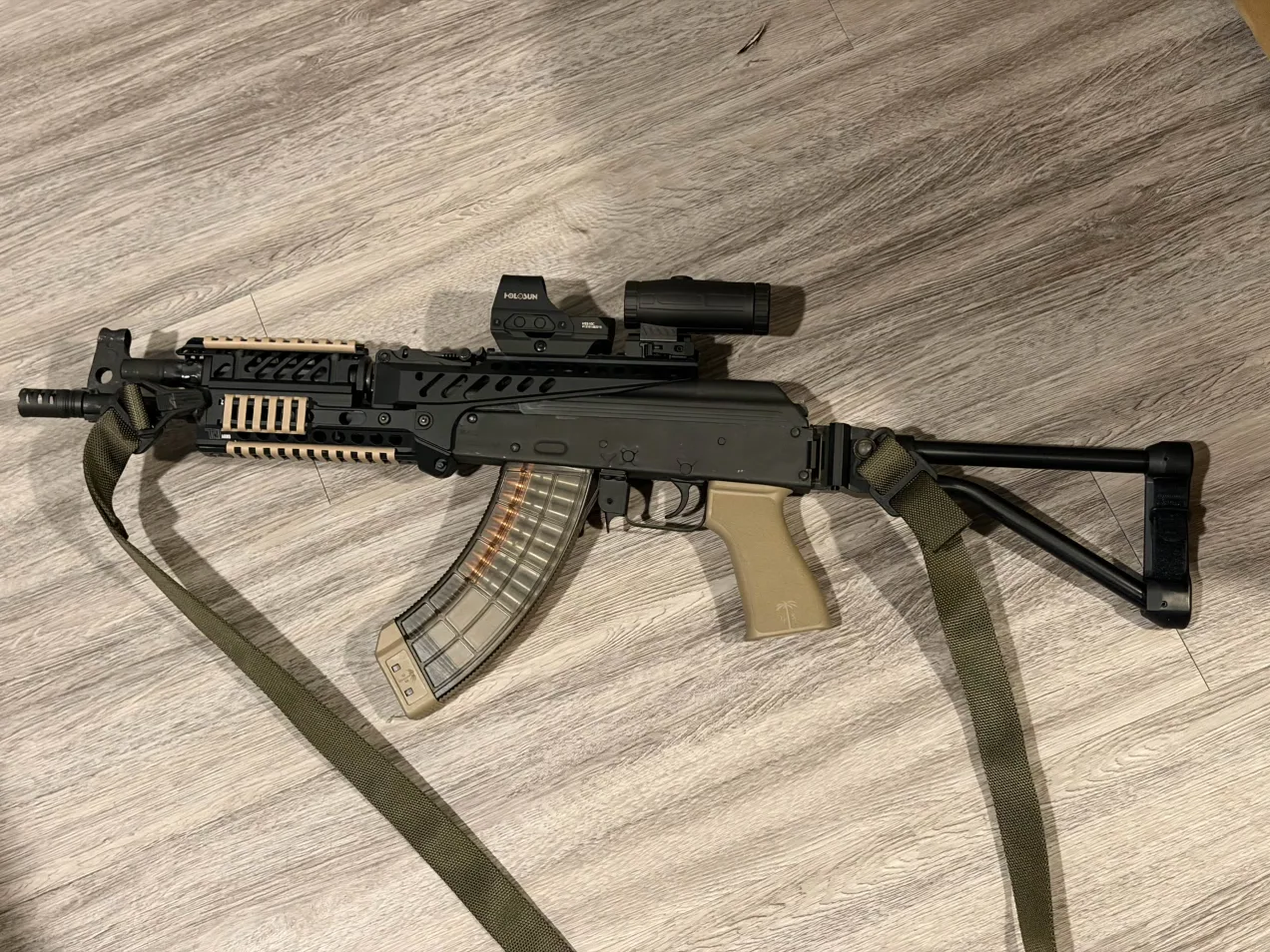 >self-ejecting magazines>whiffle bullets>kaleidoscope optic>weighted sling>low-recoil proof ammunition>skeletonized suppressor