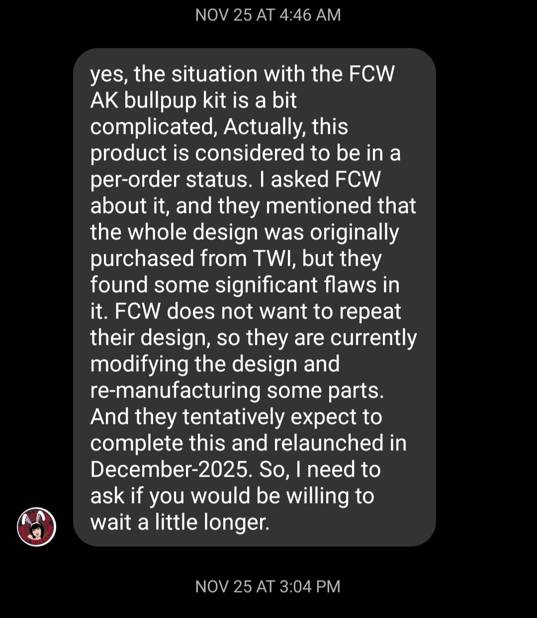 >>64687986>implore you to research KochevnikBelieve me, that was my first option but the reproductions aren't made anymore and I can't find any used. I spoke to a Chinese retailer about the model TWI used to make. TWI sold off the rights to another company, FCW, that has repeatedly pushed the preorder delivery date back over the course of a year. They're now expecting a summer 2026 delivery date. AFAIK there aren't any US distributors planning on importing them so you have to do it yourself if they ever deliver.