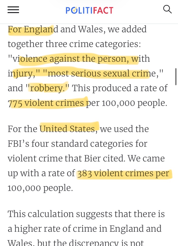 >>64746411Reminder infantile nu-males like you got your wish in third world shitholes like Britain and now the violent crime rate is at best TRIPLE of America’s.If a violent criminal is running around attacking as many as possible then cripple him before he knocks somebody into the tracks and let EMS collect him.This is why JHP and frangible are much loved in cities. Guns aren’t banned you just have to make sure the bullet explodes near his spinal cord and won’t exit to anyone else.A Basedjak who is now unemployed tried to prove guns bans had not turned UK into a far cry 2 esque hellscape but even he had to admit that even the most pro Bongo reading proves the Bongo is way more violent and dangerous than America https://www.politifact.com/factchecks/2013/jun/24/blog-posting/social-media-post-says-uk-has-far-higher-violent-c/