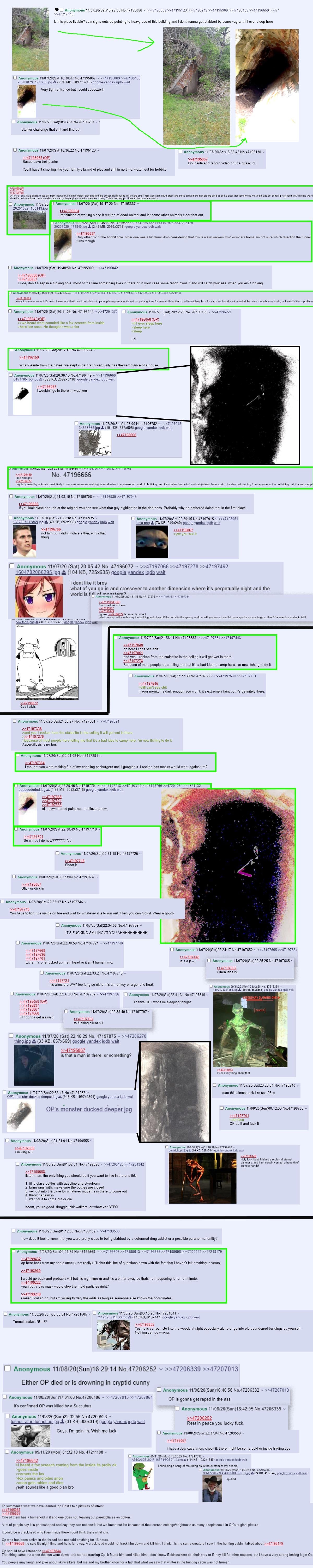 >>64748015One of the better greentexts I was in. I was the one that initially revealed the thing in the back of the tunnel. Still have the images too lol.