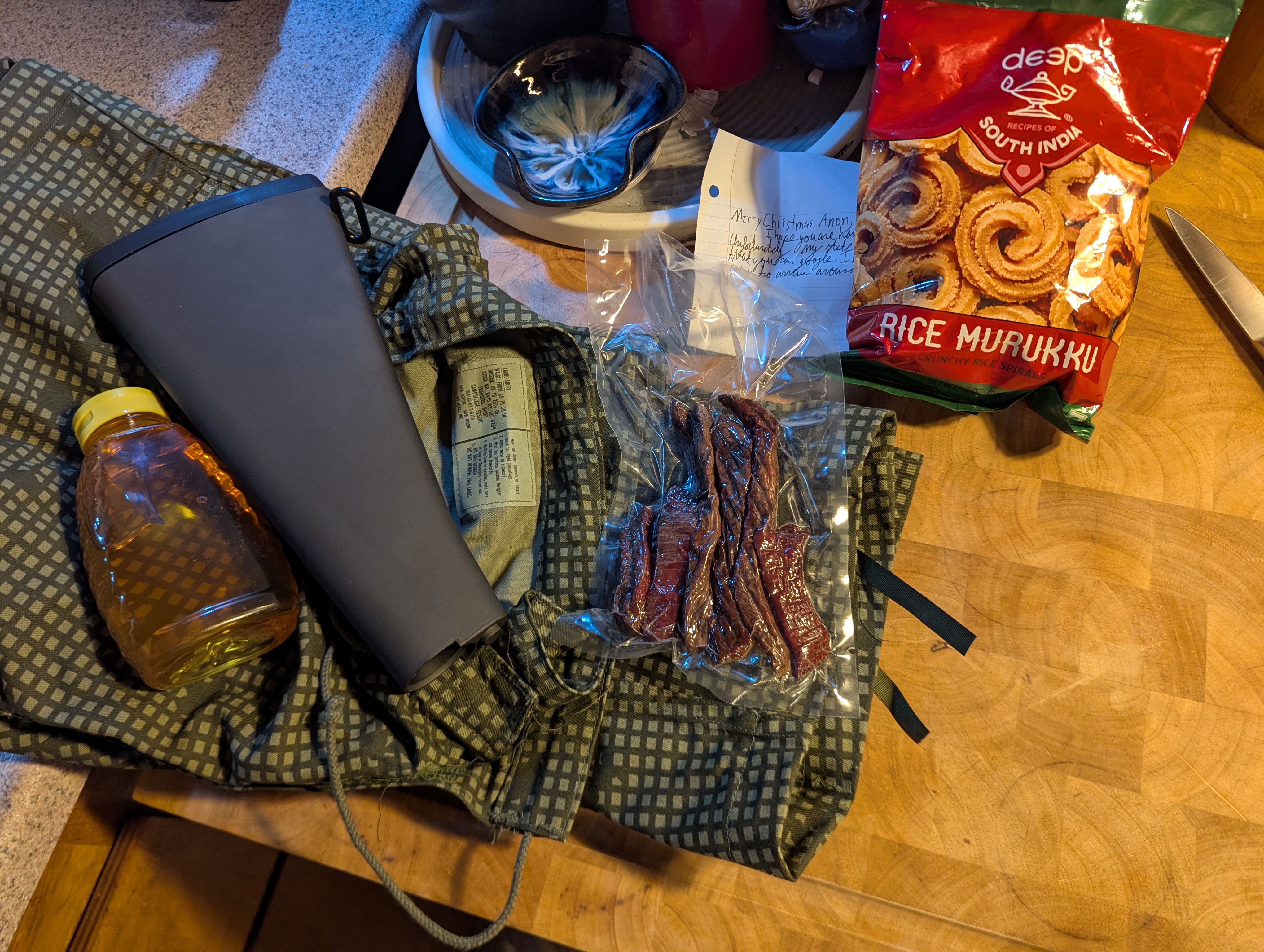 South da/k/ota anon, thank you! I was out of town and came home to the package. I've wanted a standard A2 stock for so long and never pulled the trigger. Now my 24" barrel monster AR looks proper and will absolutely fuck at the range. These pants are awesome too, I was out in Nevada and they actually fucking work. Need a top now. Is the honey local or is there piss hidden in there? The jerky was fucking great and those cookies are surprisingly good. Didn't expect the pepper hit at the end. Merry Christmas!!
