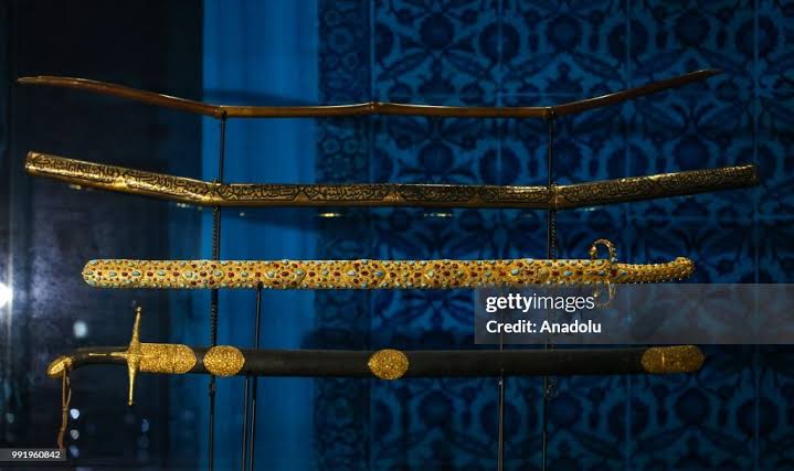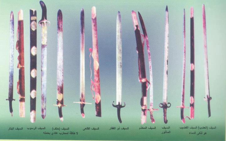 Post swords of religious leader, famous military guys, or famous politiciansThese are the swords of Prophet Muhammad PBUH, he also owned armour and bows