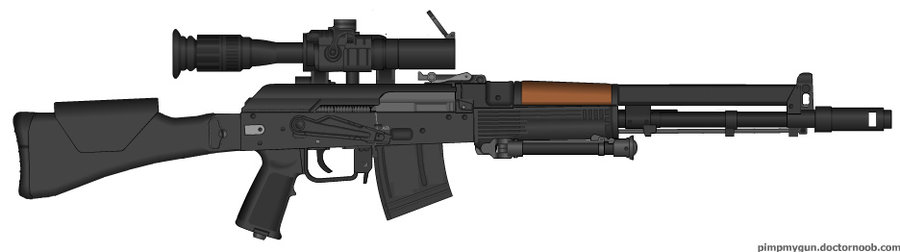 AK 108 but working and real, in 7.62x51USP Factory 10mmSteyr Scout but titanium, lighterXM8 but modernized