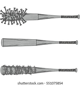 >Nailed batDamages integrity and makes the bat easy to break.>Razor wire / Barbed WireCushions the bats impact, reducing power>Bolt studded baseball batProbably concentrates the focre on smaller points increasing crushing power? May damage the bats integrity? Can't slide hands to the upper half of the bat.>Plain batMay be better than bolt studded possibly?ARe there versions I missed?