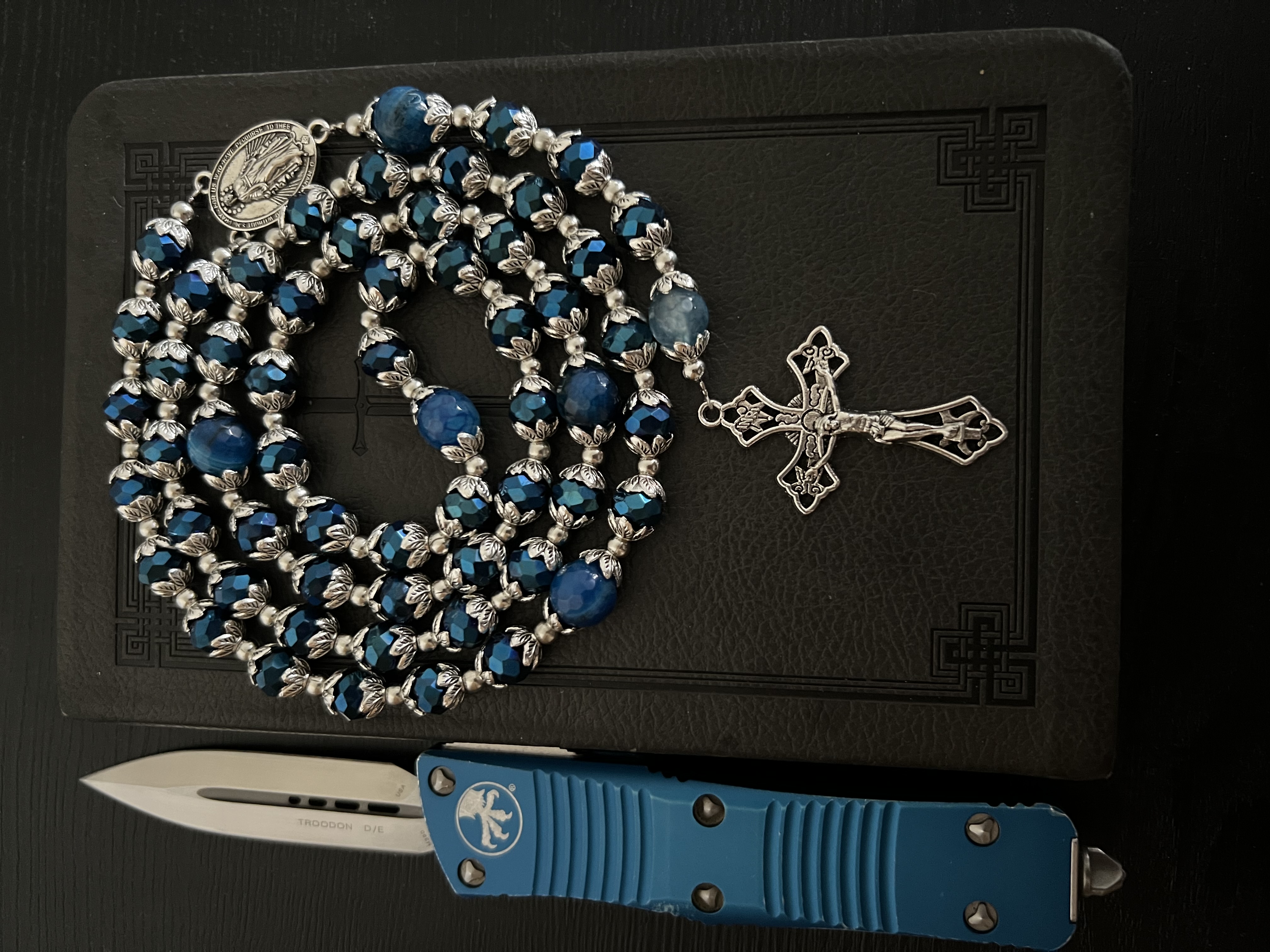 Am I doing it right, Anons?Do you like my overpriced pocket dagger? I like that it’s blue. Matches this rosary I have.Type “amen” and share your most expensive knife in your collection and Jesus will give you the big W.